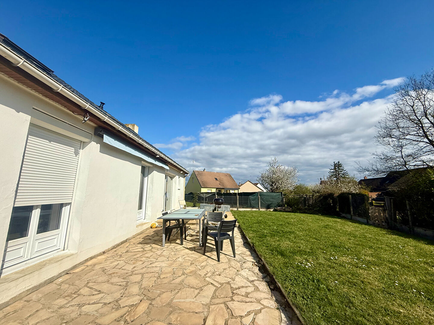 Le terrain clos de 685 m² propose une piscine chauffée, une terrasse sans vis-à-vis et de beaux espaces extérieurs.