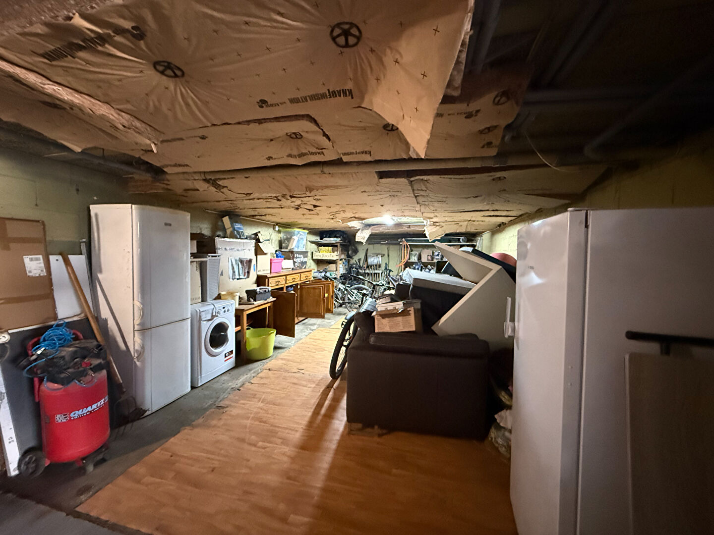 Le sous-sol complet permet le stationnement de 2 véhicules et dispose d'un atelier, d'une cave et de rangements.