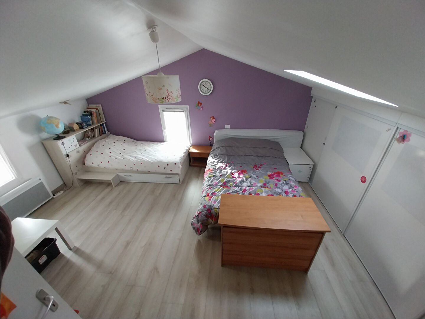 Maison composée d'un séjour coin salon, cuisine, chambre parentale avec douche et wc, salle de bains avec wc, à l'étage 2 chambres, wc. Proximité plage et forêt quartier de la Frandière.
