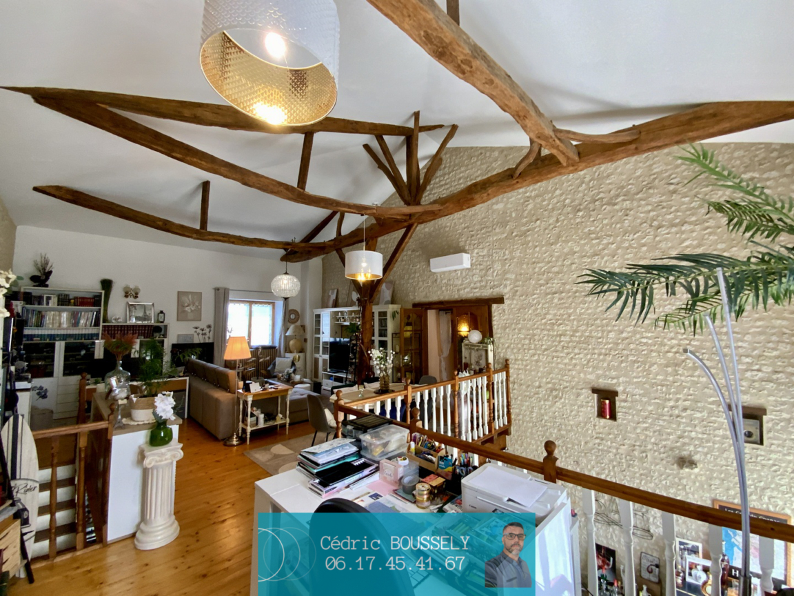 Un séjour principal de plus de 60 m², lumineux et convivial; et une magnifique mezzanine d'environ 40 m², avec de superbes hauteurs sous charpente apparente, un vrai coup de coeur !