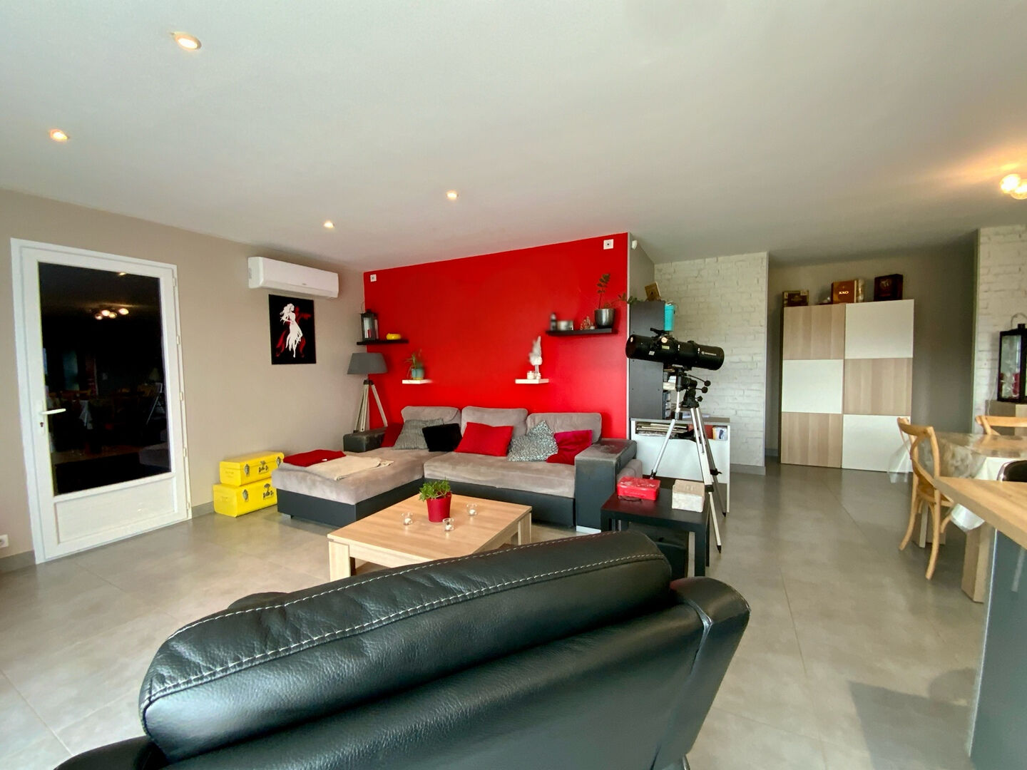 Un espace de vie chaleureux avec une cuisine ouverte sur le séjour pour partager de bons moments ensemble dès le petit-déjeuner ! Une terrasse spacieuse qui s'ouvre sur un agréable jardin avec piscine semi-enterrée.