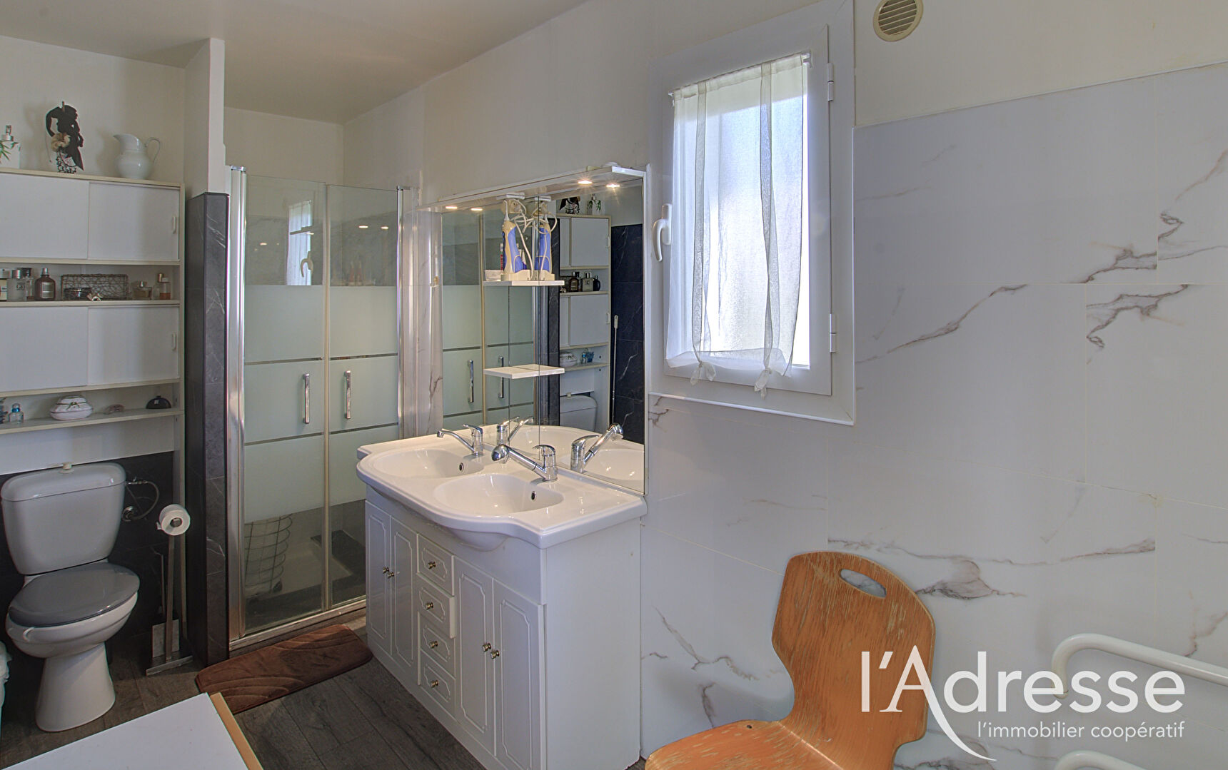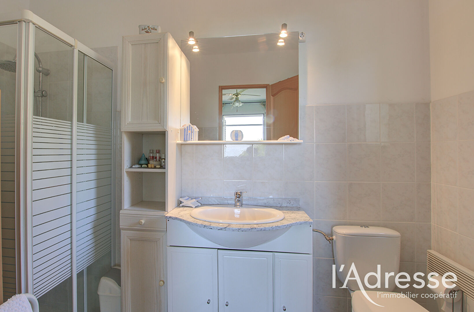 La partie principale, entièrement de plain-pied et d'environ 115 m², propose un séjour lumineux avec cheminée (insert) et climatisation. La pièce de vie et la cuisine aménagée et équipée s'ouvrent directement sur une terrasse d'environ 36 m², exposée sud, permettant de profiter pleinement de la vue. Le deux chambres disposent chacune de leur salle d'eau privative avec WC. Un bureau et un WC indépendant complètent ce niveau.