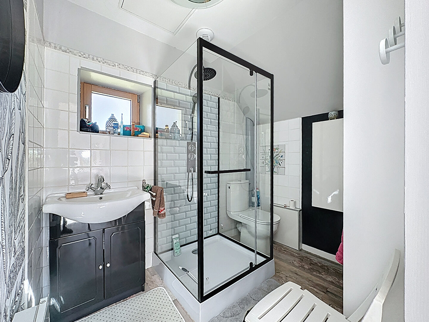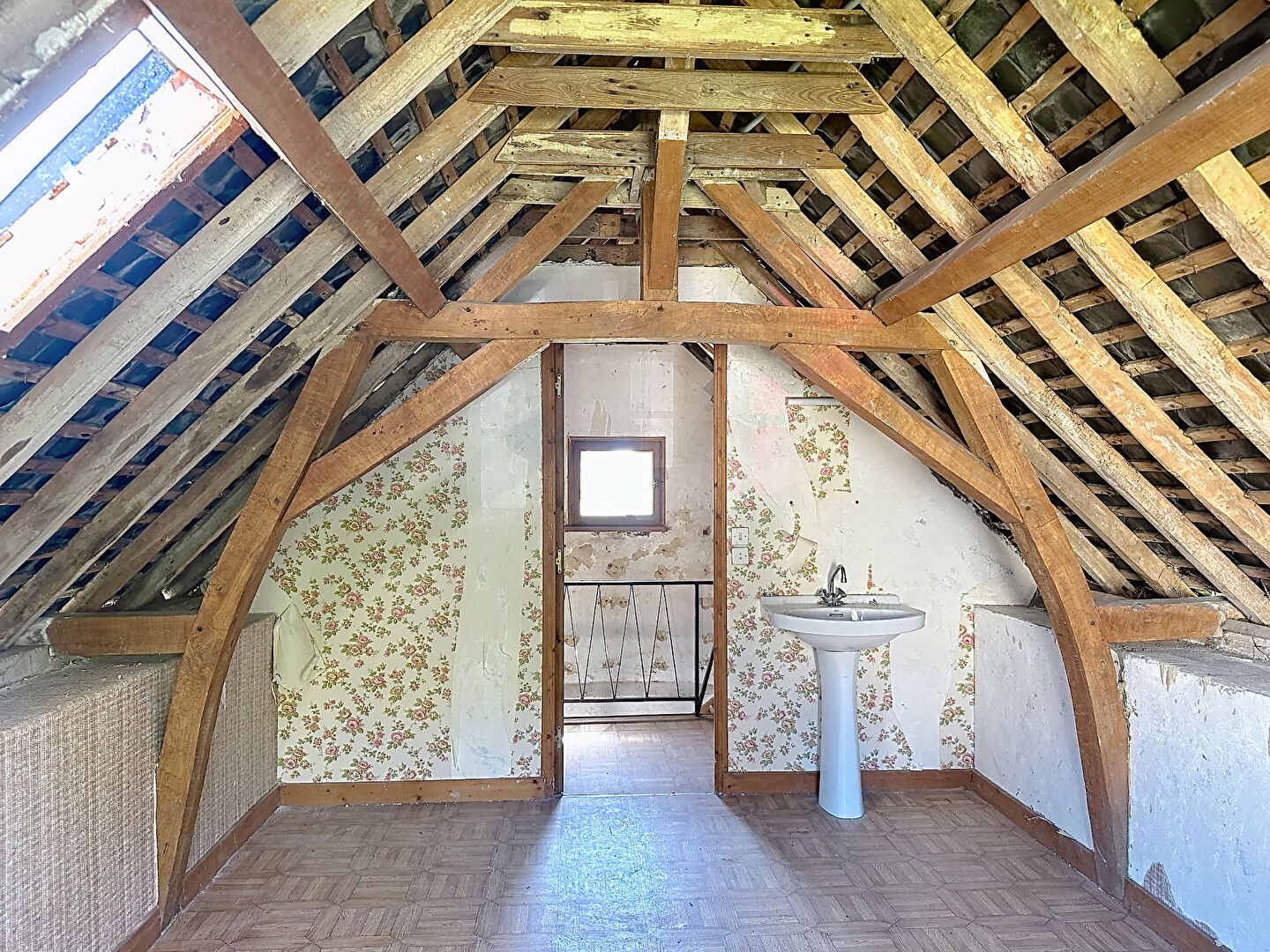 À l'étage : une grande chambre avec salle d'eau et W.C., idéale pour recevoir ou créer une suite confortable.