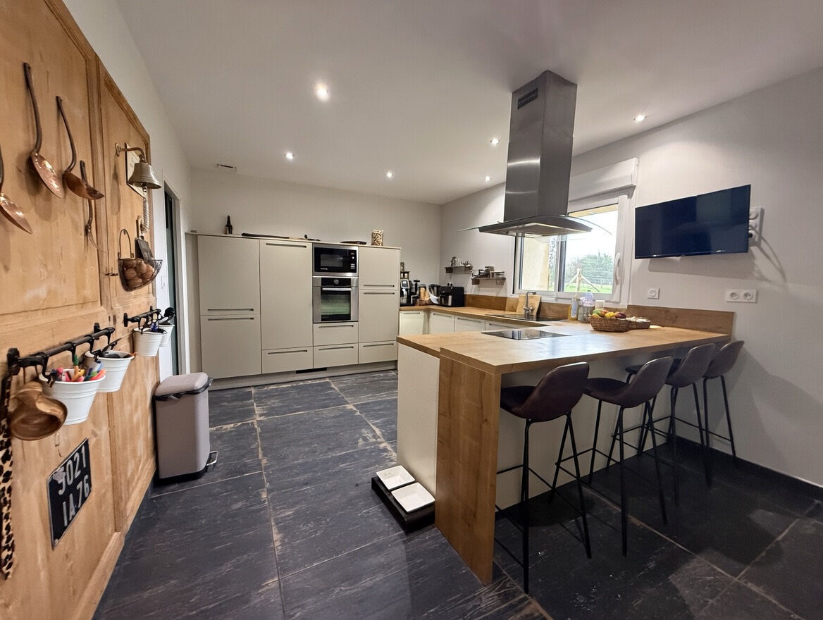 Au rez-de-chaussée, vous serez séduit par une superbe pièce de vie de 80 m², entièrement ouverte, comprenant une cuisine aménagée et équipée, un espace salle à manger et un séjour agrémenté d'un poêle à bois central et d'une cave à vin.