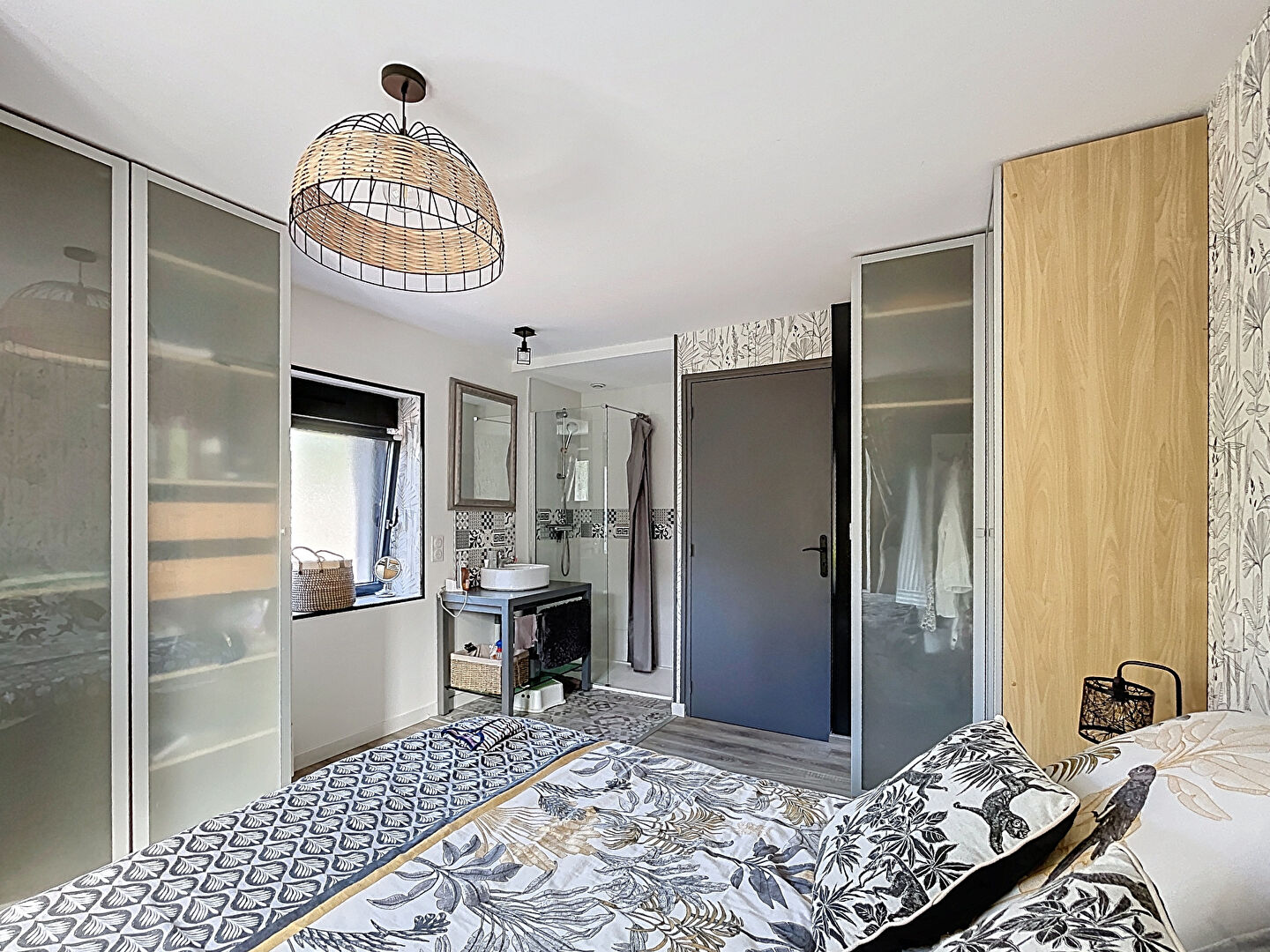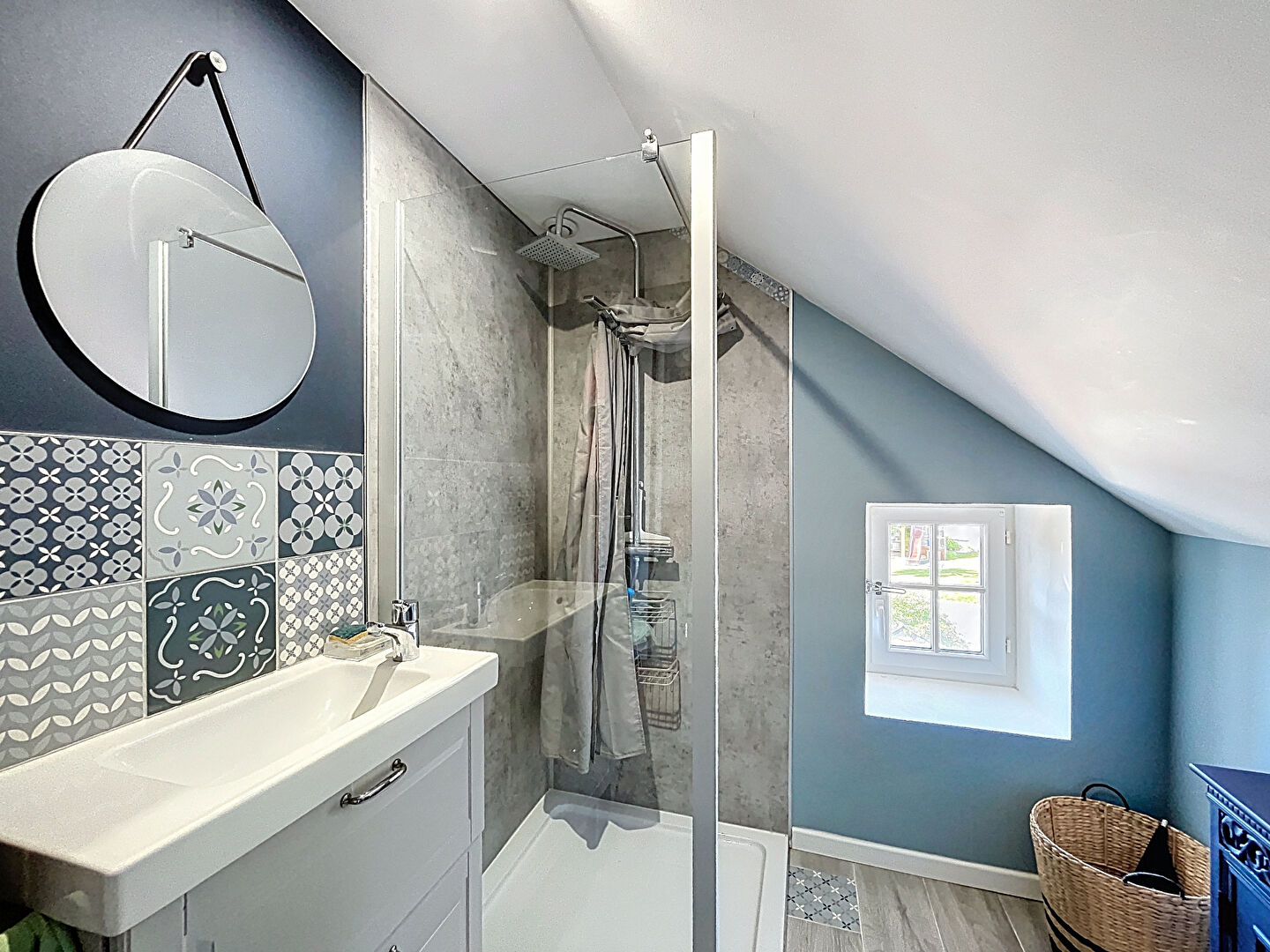 A l'étage vous attendent deux belles chambres, un grand palier, une salle de douche et un WC. A l'extérieur vous pourrez profiter de la terrasse et du jardin clos de 885 m² , du double garage, de la cave et d'une dépendance de près de 20 m².