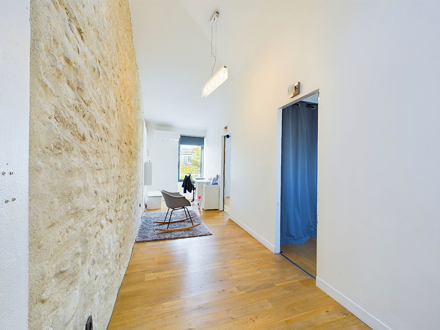 À l'étage, la maison dispose de trois grandes chambres, dont une avec dressing, ainsi qu'une salle d'eau moderne avec WC.