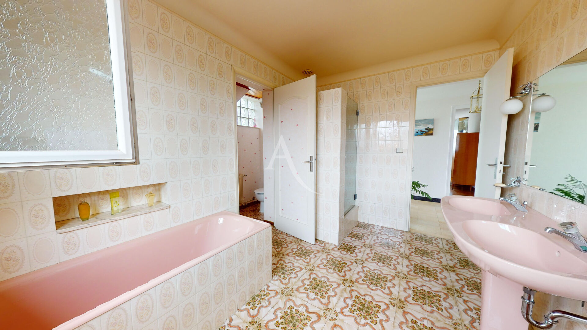 Le même palier accueille une salle de bains avec une douche et des WC séparés.