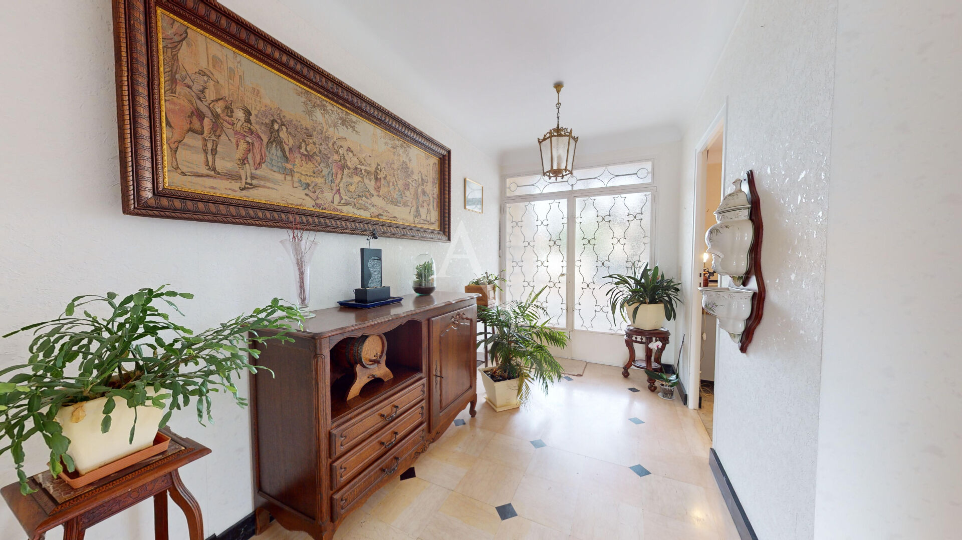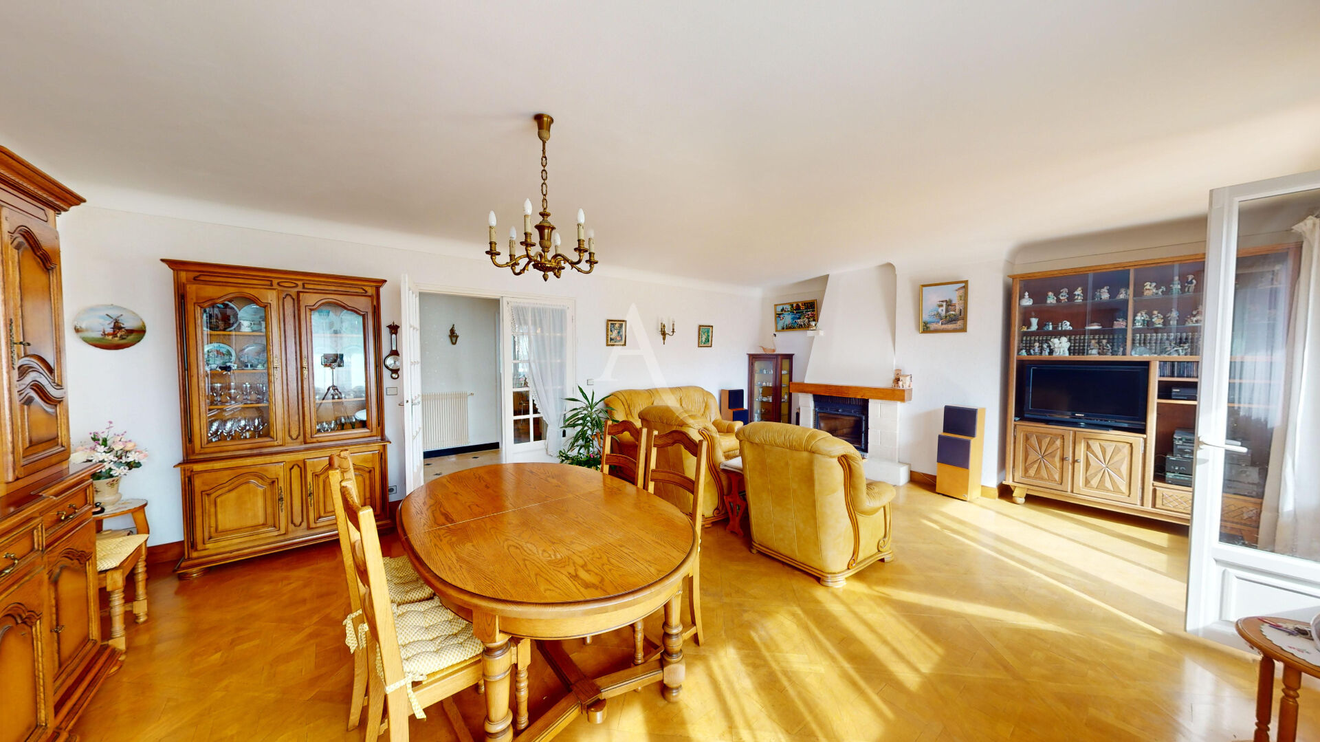 Dès l'entrée, le ton est donné avec un sol en marbre qui mène à une spacieuse pièce de vie. Le salon-salle à manger, sublimé par un parquet Versailles et une cheminée avec insert, s'ouvre directement sur une agréable terrasse. La cuisine dînatoire, parfaite pour les repas en famille, jouxte une chambre, des toilettes séparées et de nombreux placards de rangement.