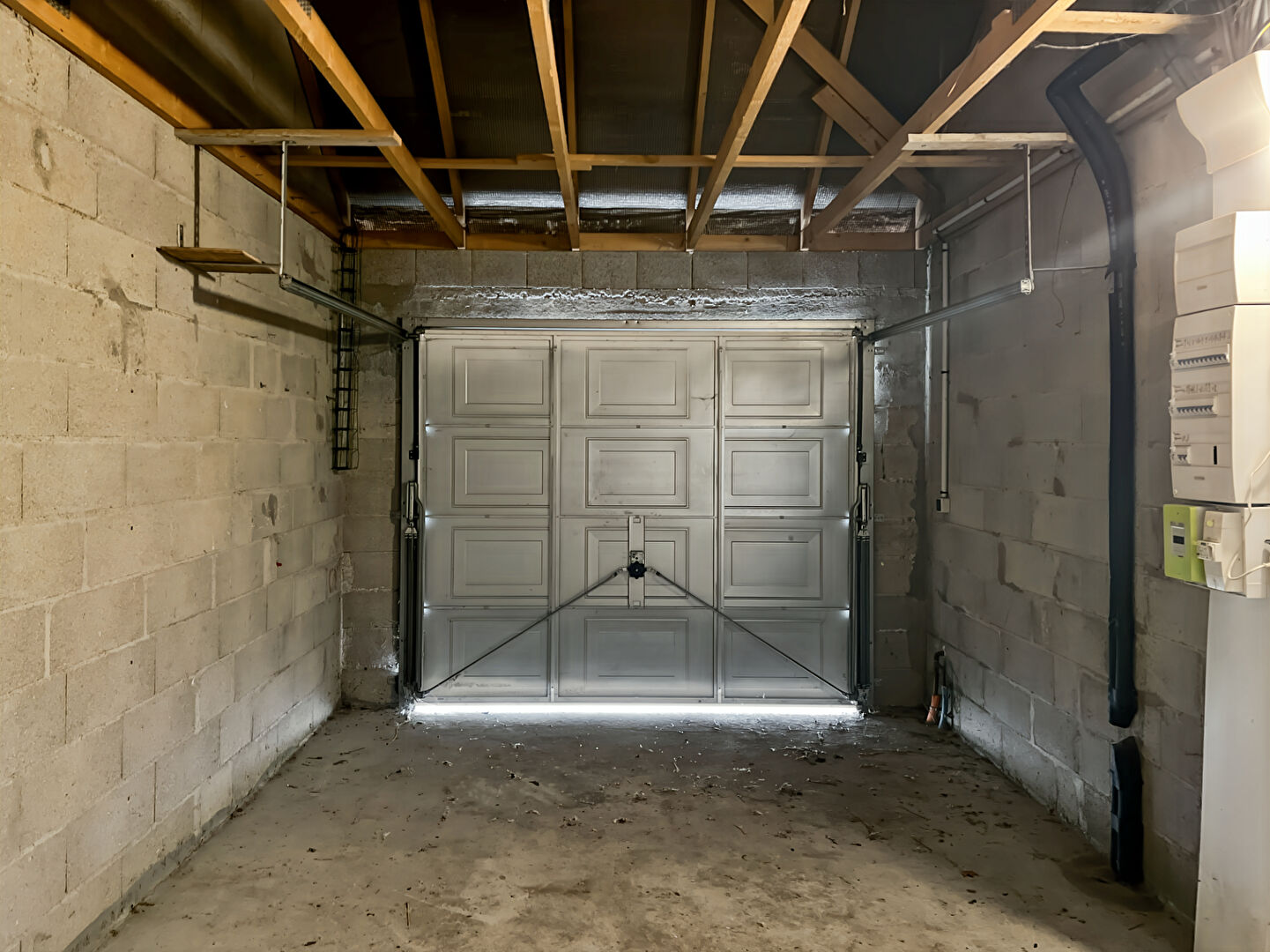 Jardin clos d'environ 300 m². Garage + place de stationnement privative.