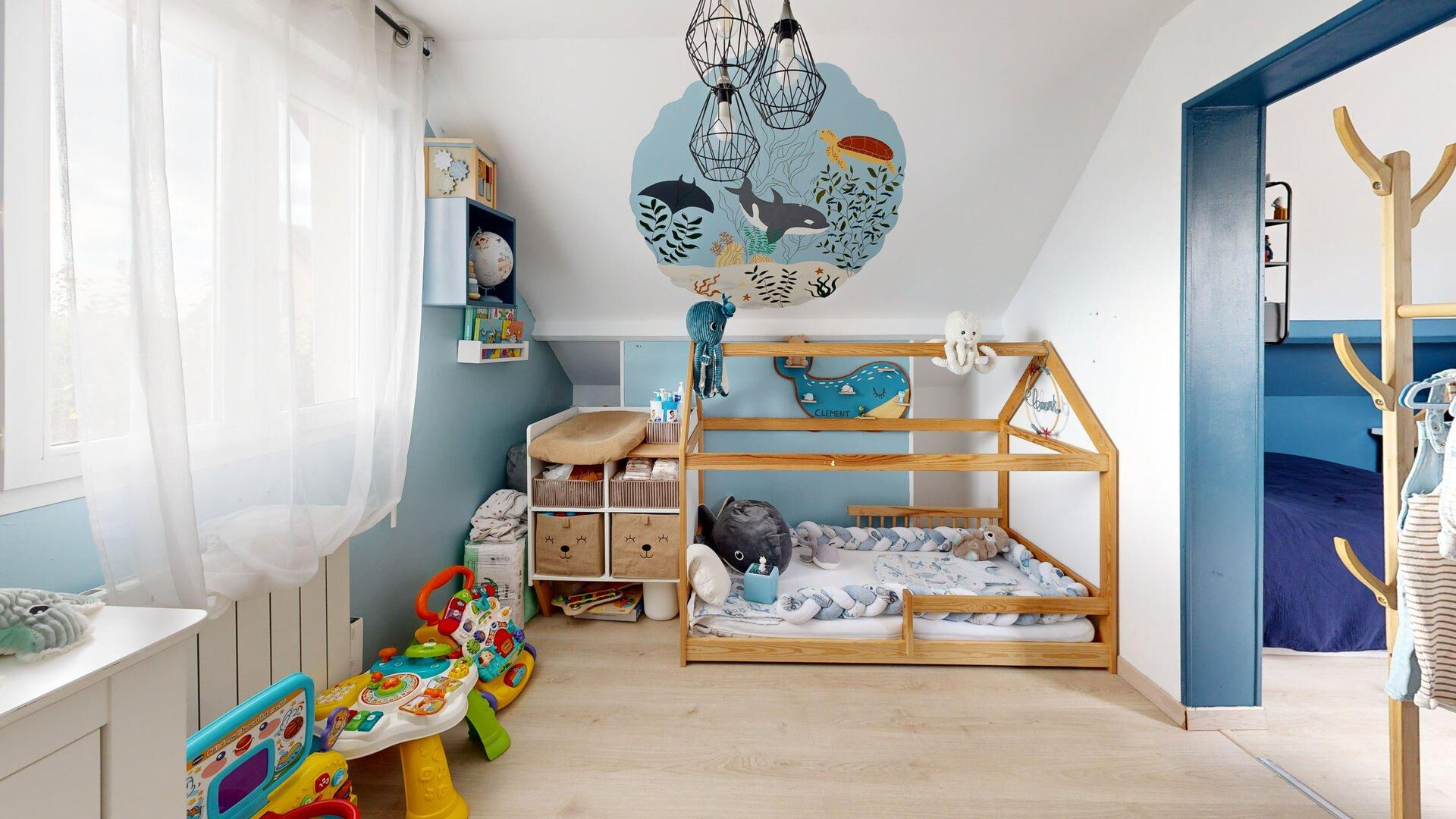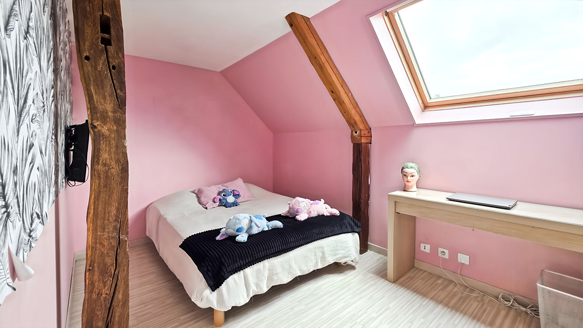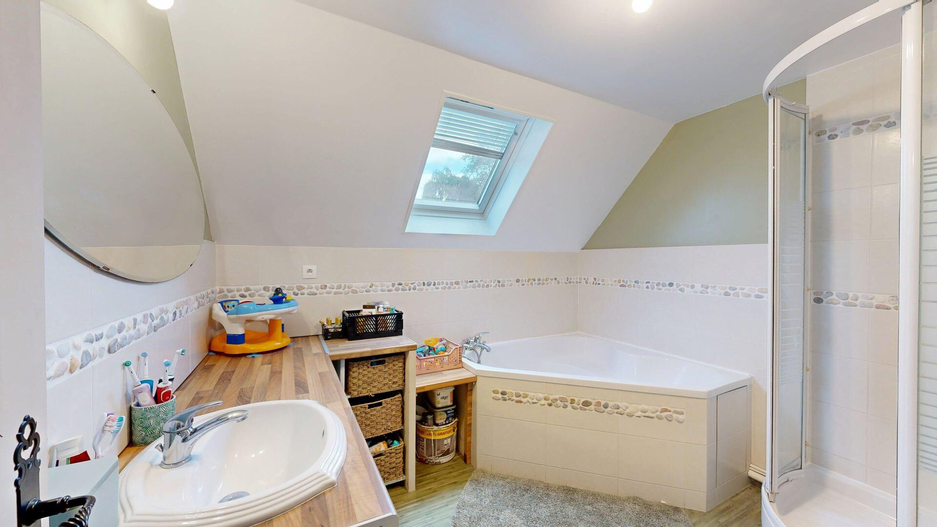 A l'étage un palier/couloir qui dessert 4 chambres, une salle de bain avec douche et baignoire.
