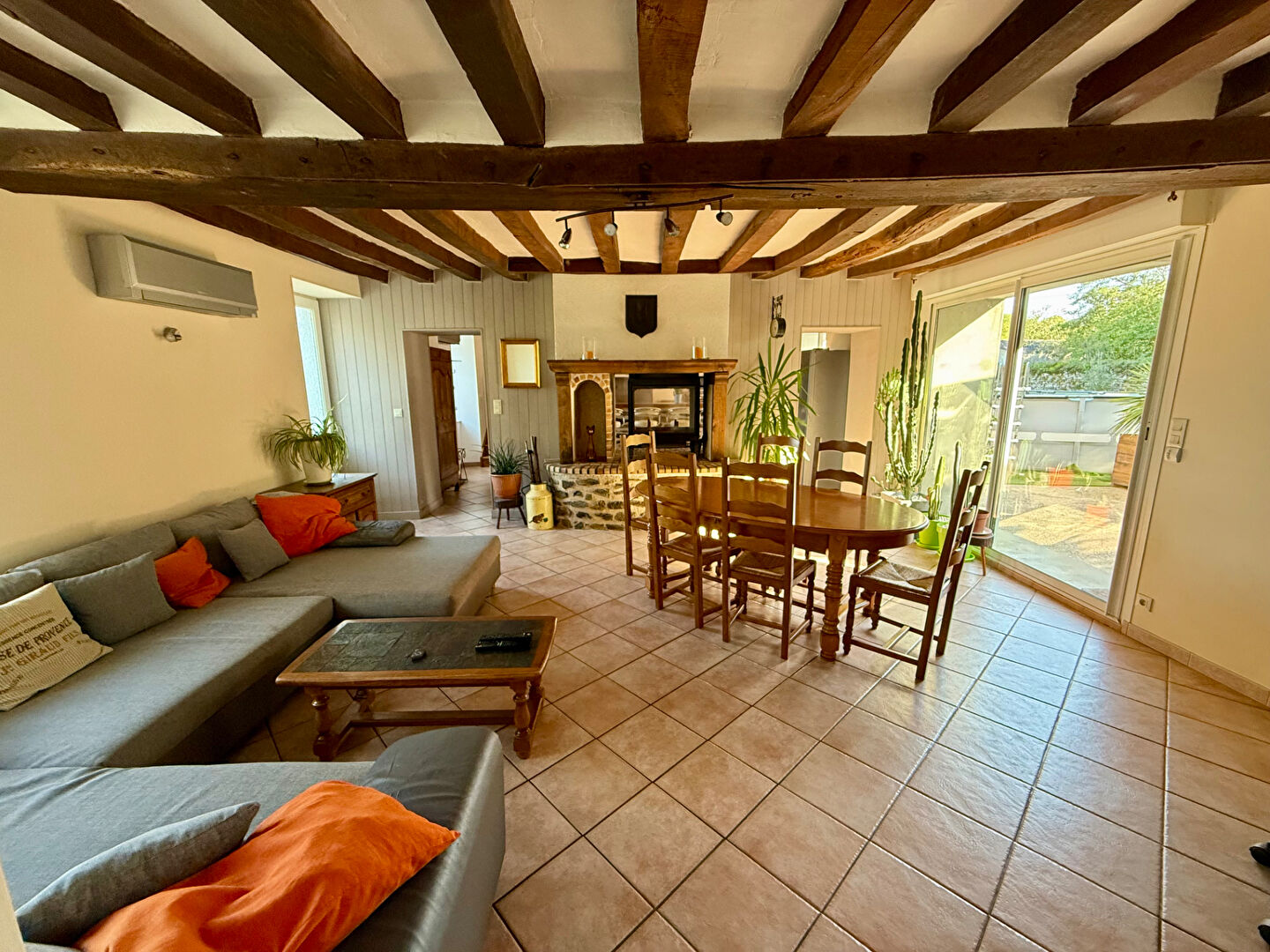 Située à la campagne, cette belle longère allie charme de l'ancien et confort moderne. Offrant de beaux volumes, elle se compose, au rez-de-chaussée, d'un vaste salon/séjour chaleureux avec insert, d'une cuisine aménagée et équipée, d'une chambre, d'une salle d'eau, d'un WC indépendant ainsi que d'une buanderie fonctionnelle.