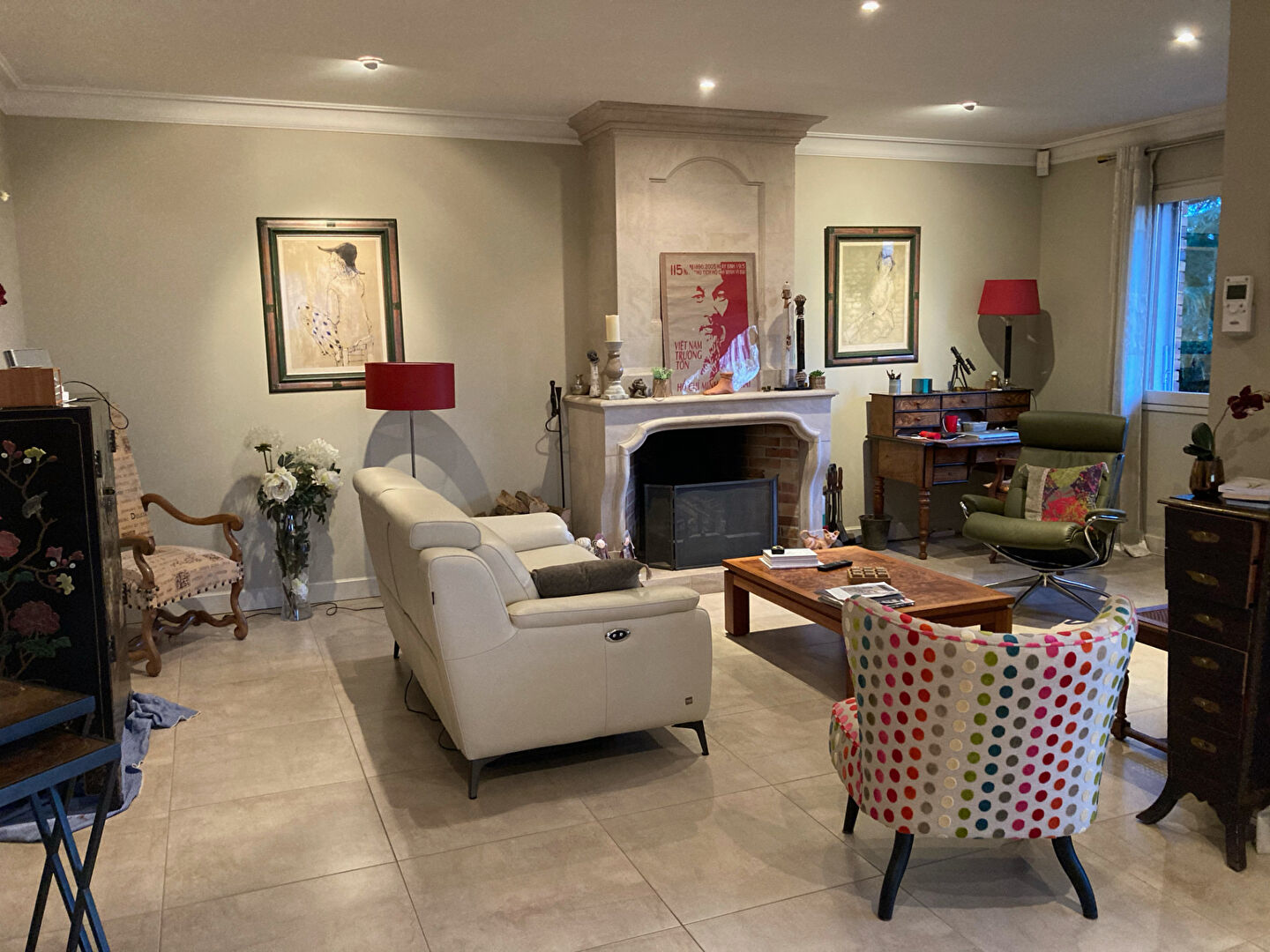 Élevée sur sous-sol semi-enterré, la maison propose principalement une vie de plain-pied. Elle se compose d'une belle entrée avec vestiaire et toilettes, d'un double séjour/salon lumineux de 42 m² avec cheminée prolongé par une véranda chauffée de 28 m², idéale pour profiter du jardin en toute saison.
