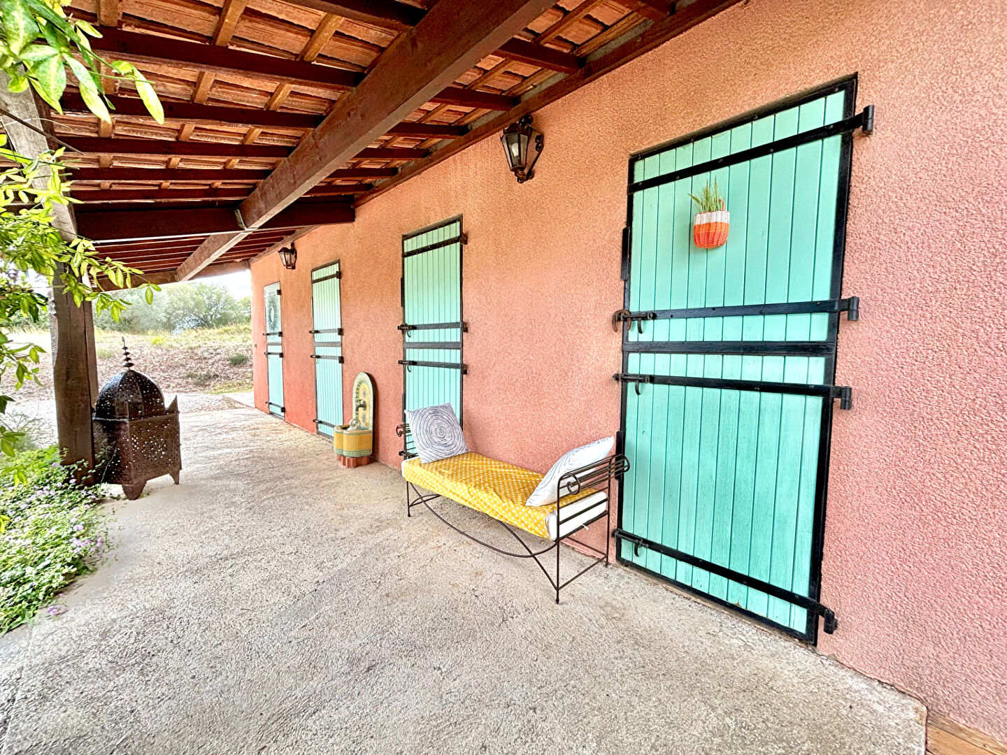 Côté extérieur : un jolie terrain en zone agricole de plus de 2000m2 et deux grandes terrasses avec une belle vue dégagée.