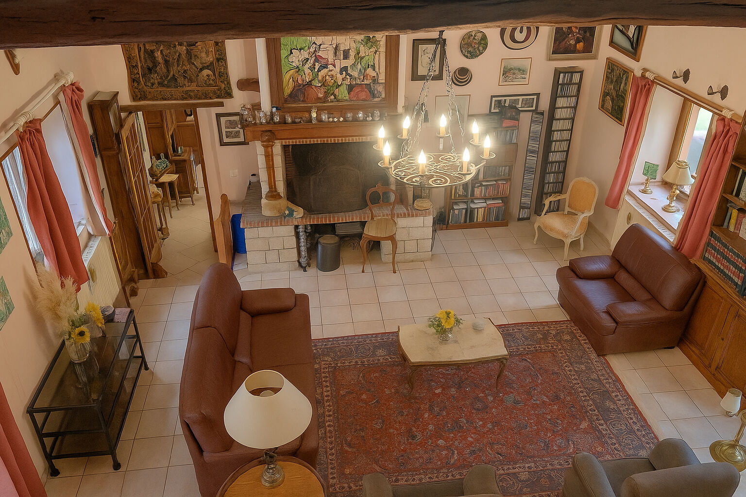 un salon en cathédrale avec sa cheminée , une cuisine indépendante, une véranda chauffée, plusieurs suites parentales.