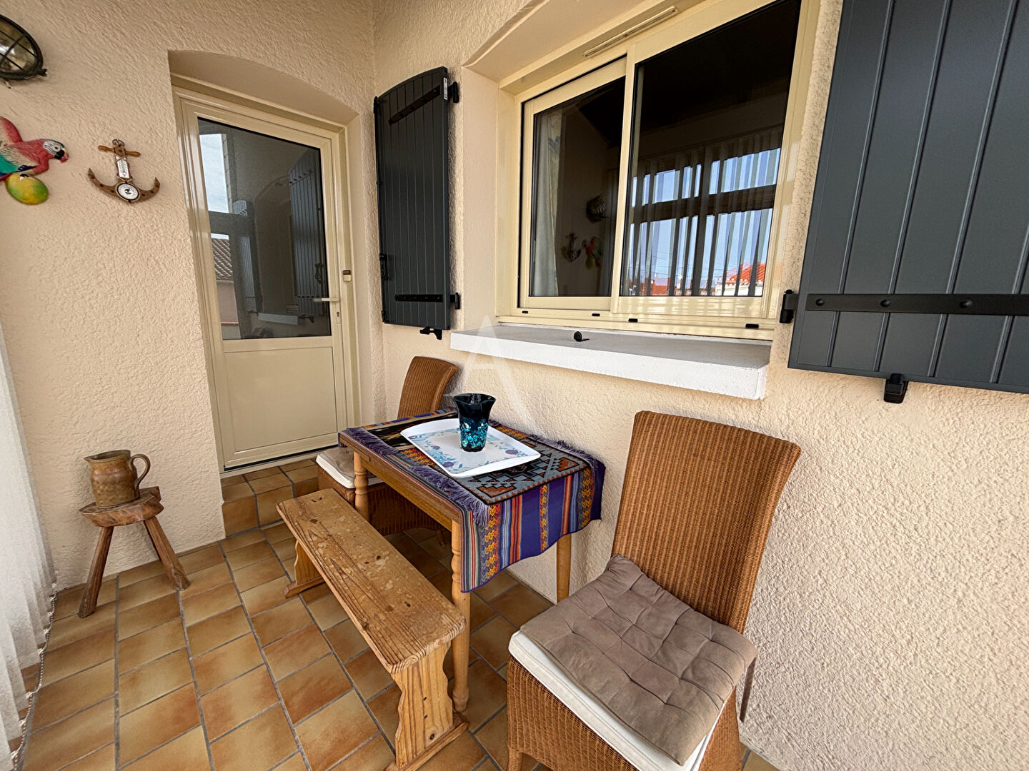 Elle se compose d'une entrée par un sas véranda, d'un salon/séjour avec cuisine semi ouverte, deux chambres, une salle d'eau et un WC séparé. Pratique et fonctionnelle, elle est idéale pour une résidence principale ou secondaire, isolation partielle par l'extérieur et fenêtres en aluminium et double vitrage. Un garage est également attenant à la maison, traversant et comunicatif avec la maison pour un stationnement facile et sécurisé.