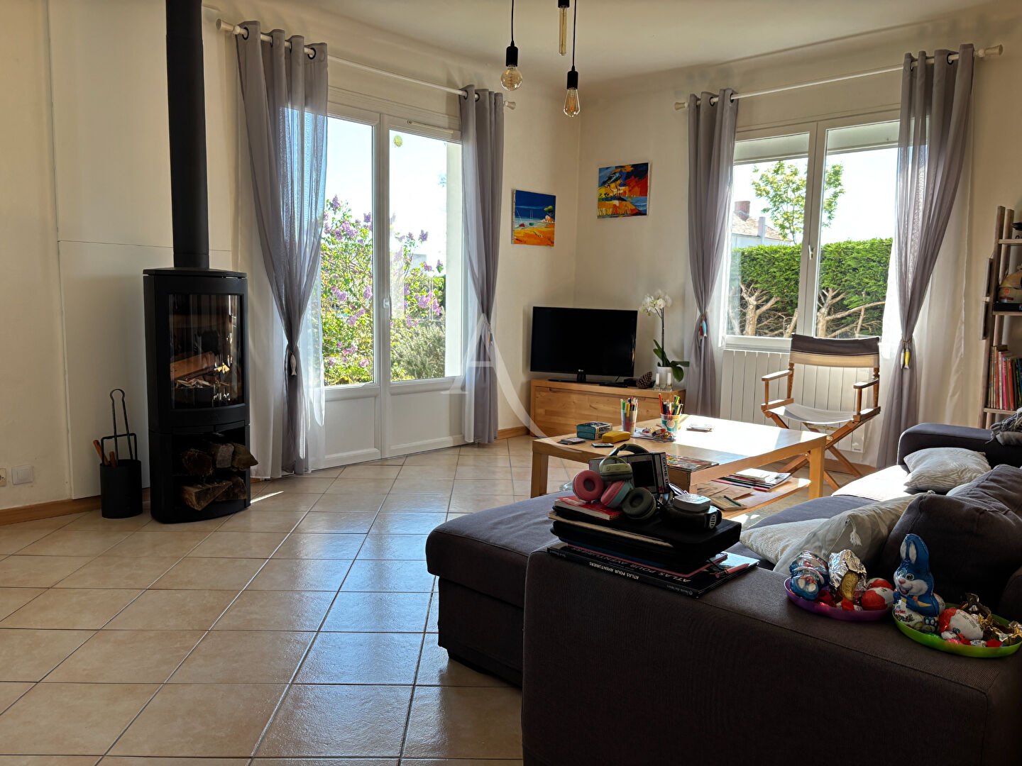 Découvrez cette charmante maison offrant un espace de vie agréable et fonctionnel. Elle se compose d'un salon séjour convivial équipé d'un poêle à bois, parfait pour créer une ambiance chaleureuse en hiver.