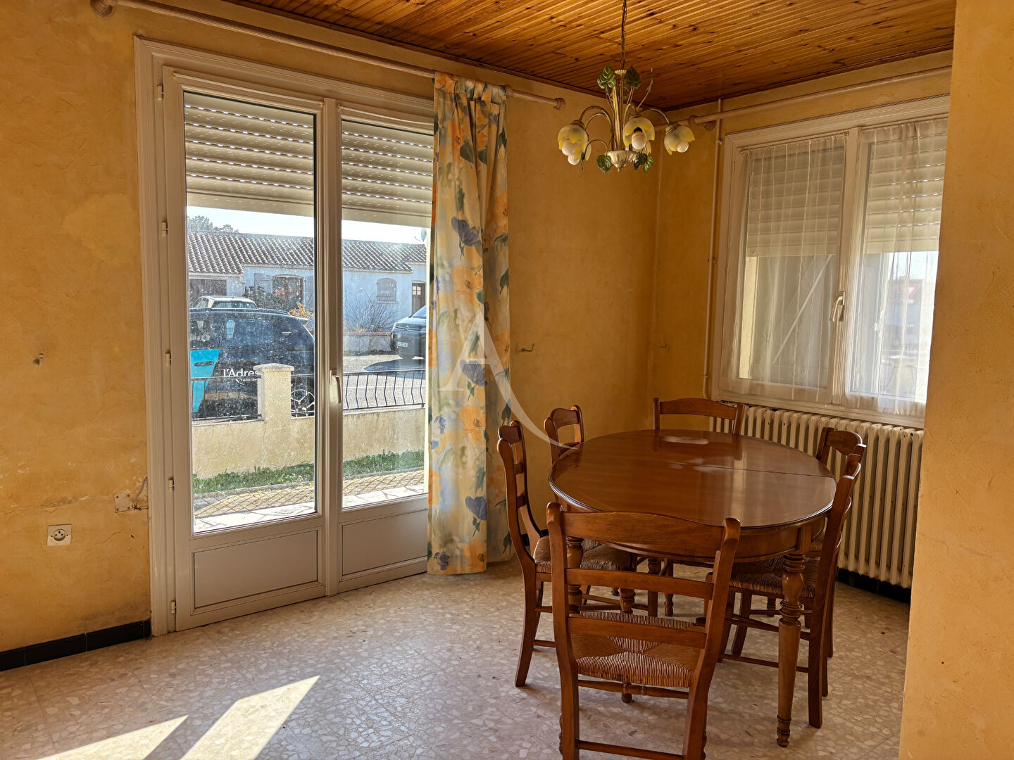 La maison se compose d'une cuisine indépendante, d'un cellier avec accès au garage, d'une belle pièce de vie baignée de lumière, de deux chambres, d'une salle d'eau et de WC séparés. Le garage attenant, accessible directement depuis l'intérieur, constitue un véritable confort au quotidien.