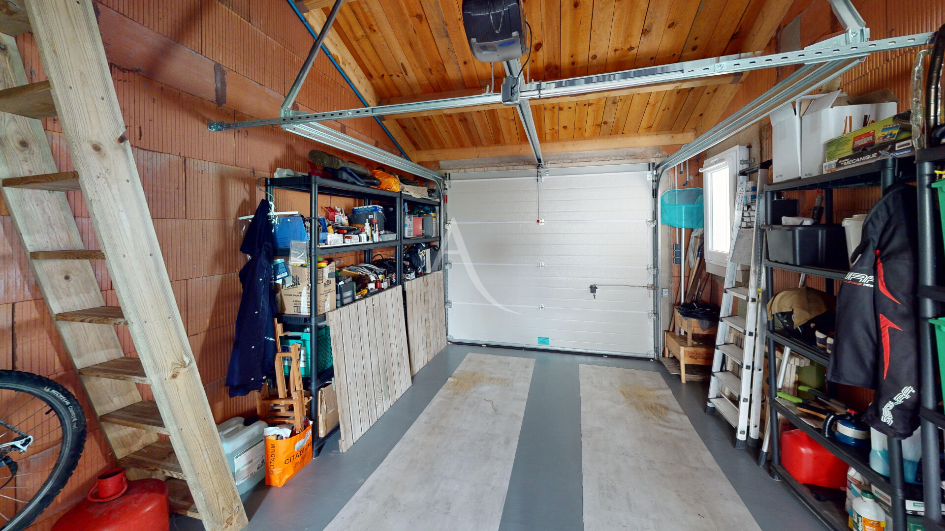 Le garage avec mezzanine, porte motorisée, coin buanderie/cuisine d'été et second WC complète parfaitement l'ensemble.