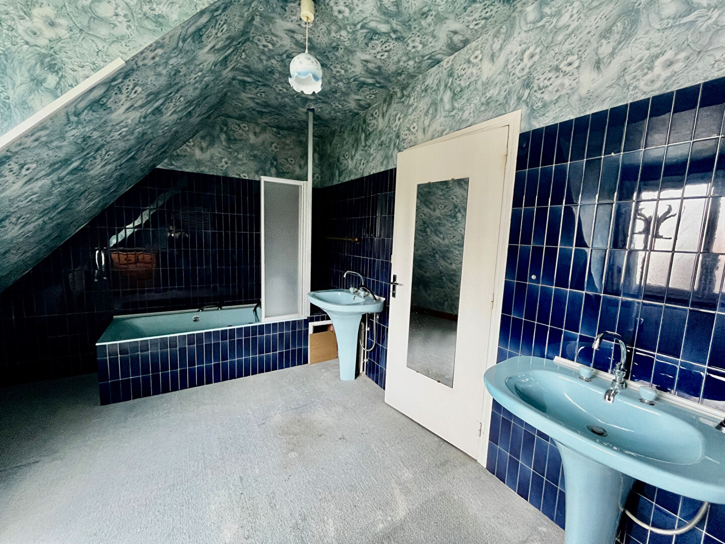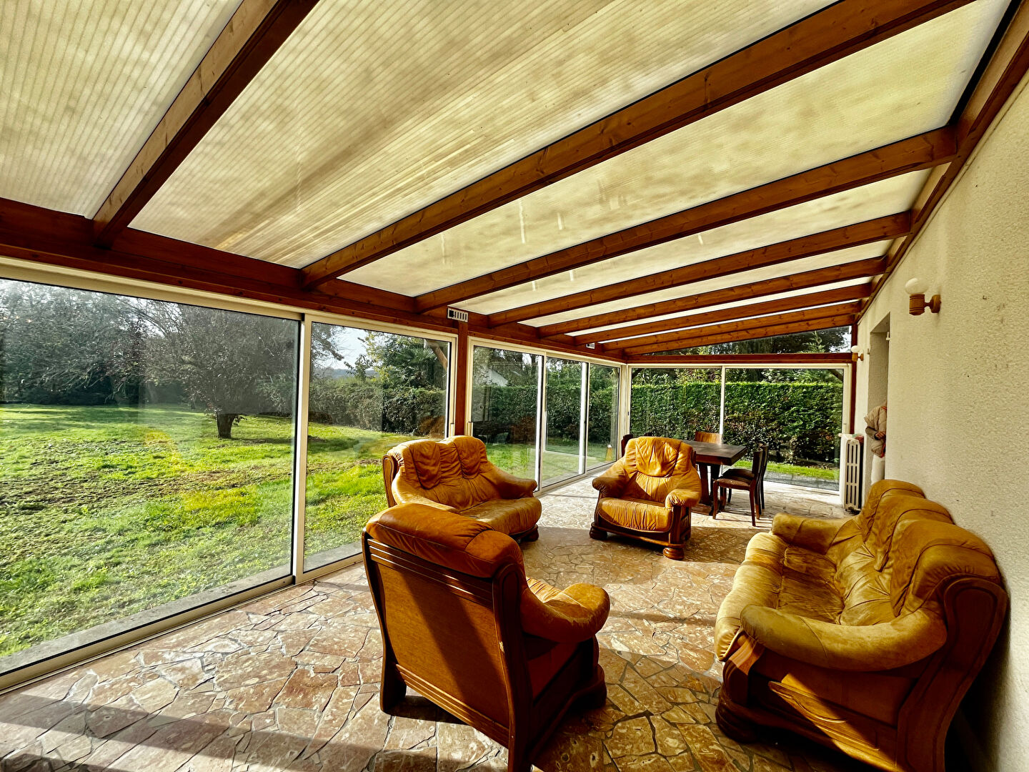 D'un grand hall d'entrée, un salon avec une cheminée feu de bois, une salle à manger, une cuisine, une grande véranda, 2 chambres dont une suite parentale avec salle d'eau, une buanderie et un wc avec lave mains. A l'étage, le palier distribue 4 chambres, une salle de bains et un wc.