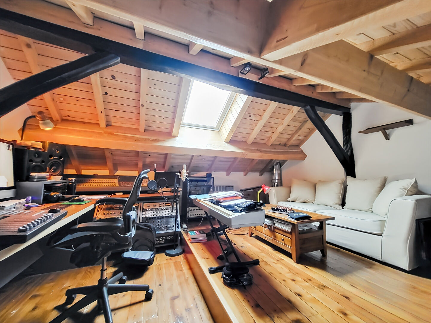Egalement situé au Rdc, une buanderie, une chaufferie et un espace aménagé en un véritable studio de 26m² avec sa mezzanine pouvant servir de chambre.