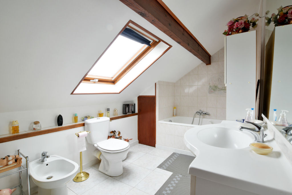L'intérieur est en bon état et dispose d'un chauffage au gaz avec radiateurs, d'un ballon électrique pour l'eau chaude, et d'une cheminée pour des soirées chaleureuses. La maison comprend également une salle de bain, deux salles d'eau et trois WC, offrant tout le confort nécessaire.