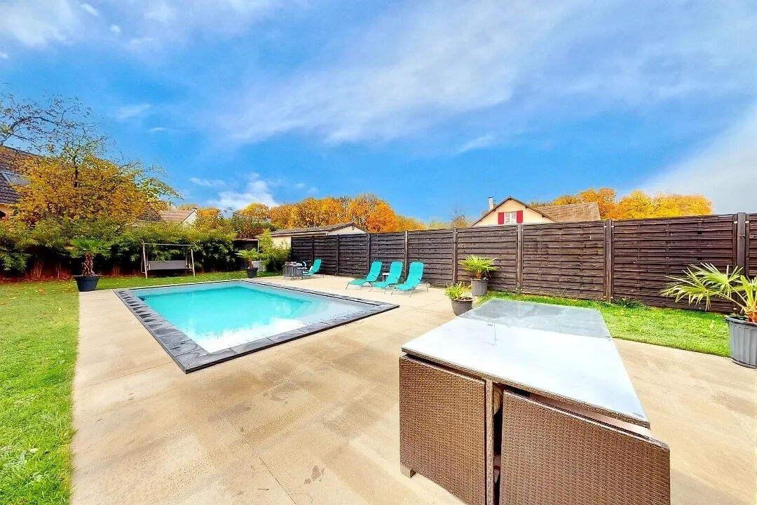Les extérieurs invitent à la détente: Un jardin aménagée et parfaitement entretenu entoure une piscine chauffée, permettant de profiter pleinement des beaux jours en toute sérénité.