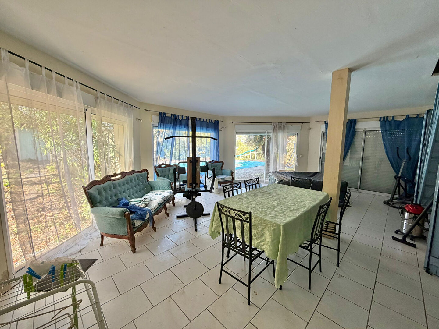À l'étage, un palier dessert deux chambres supplémentaires, une seconde salle de bains et un WC indépendant, parfait pour accueillir famille et amis. L'extérieur n'est pas en reste avec un terrain de 1800 m², un garage, une dépendance et une piscine creusée qui promet de beaux moments de convivialité.