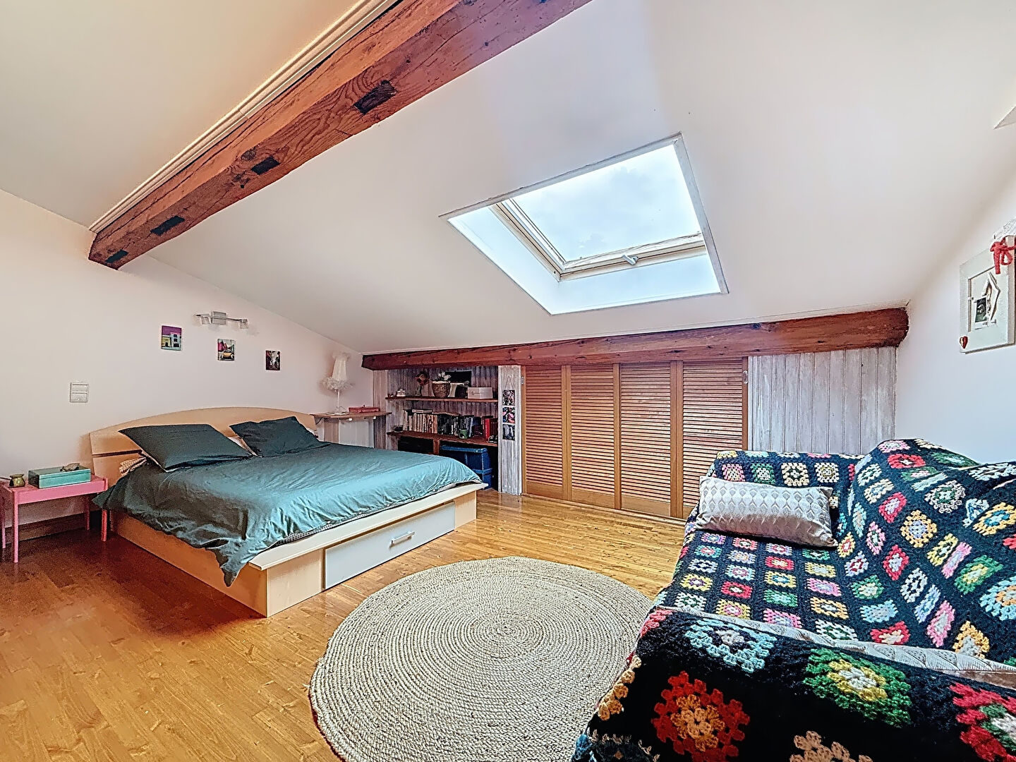 À l'étage : 2 chambres spacieuses dont 1 avec balcon, salle de bains, WC séparé, et une chambre mansardée de 46 m² au sol avec lavabo et WC ? un véritable cocon.