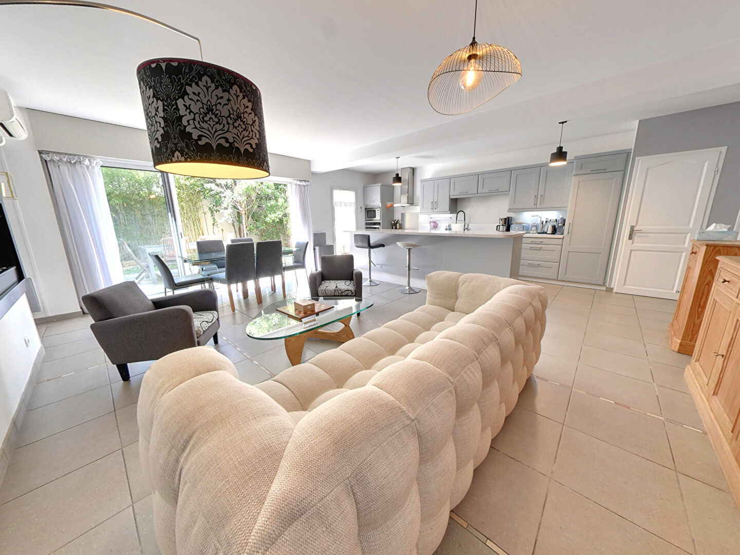En rez de jardin, un vaste séjour avec cuisine aménagé et équipée d'une surface de plus de 50m² ouverte sur jardin clos avec terrasse, un bureau et un cellier.