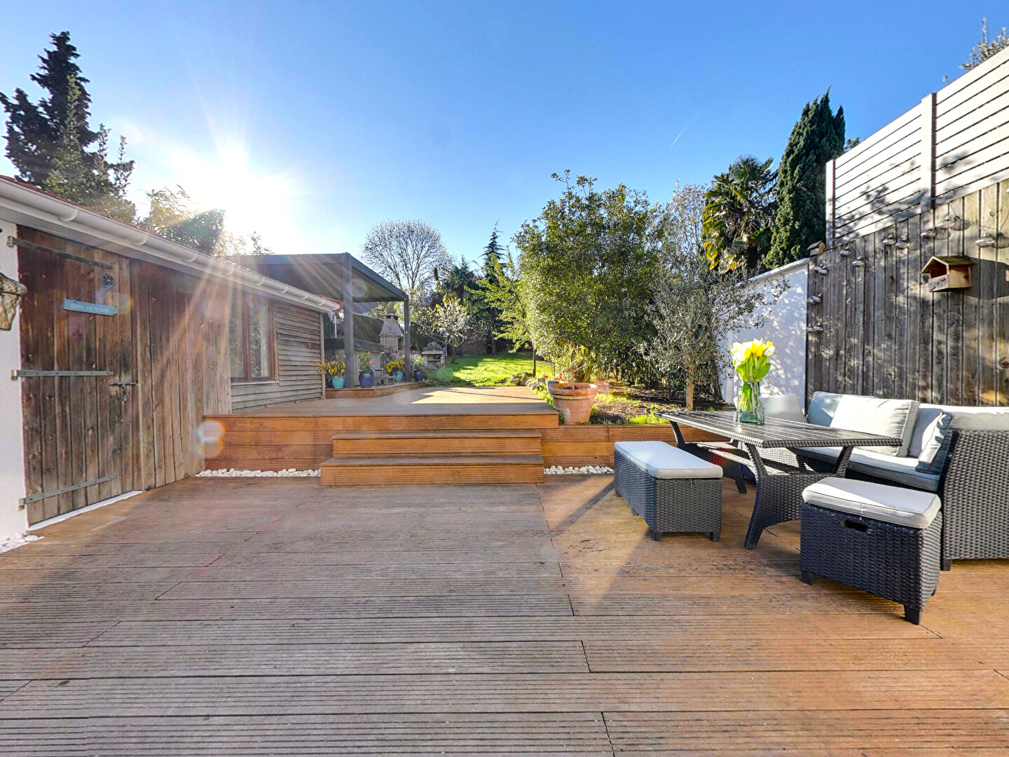 Vous serez séduit par son jardin arboré sans vis à vis offrant un très bel espace détente avec une grande terrasse en bois Cumaru, un espace avec jacuzzi chauffé, un barbecue + four à pain et sa dépendance aménagée de 9,25m² ainsi qu'une salle d'eau avec douche à l'italienne attenante, idéal pour un petit logement d'appoint.