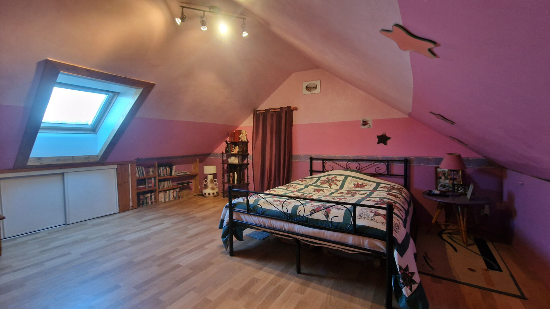 A l'étage nous avons 2 grandes chambres et une salle d'eau.