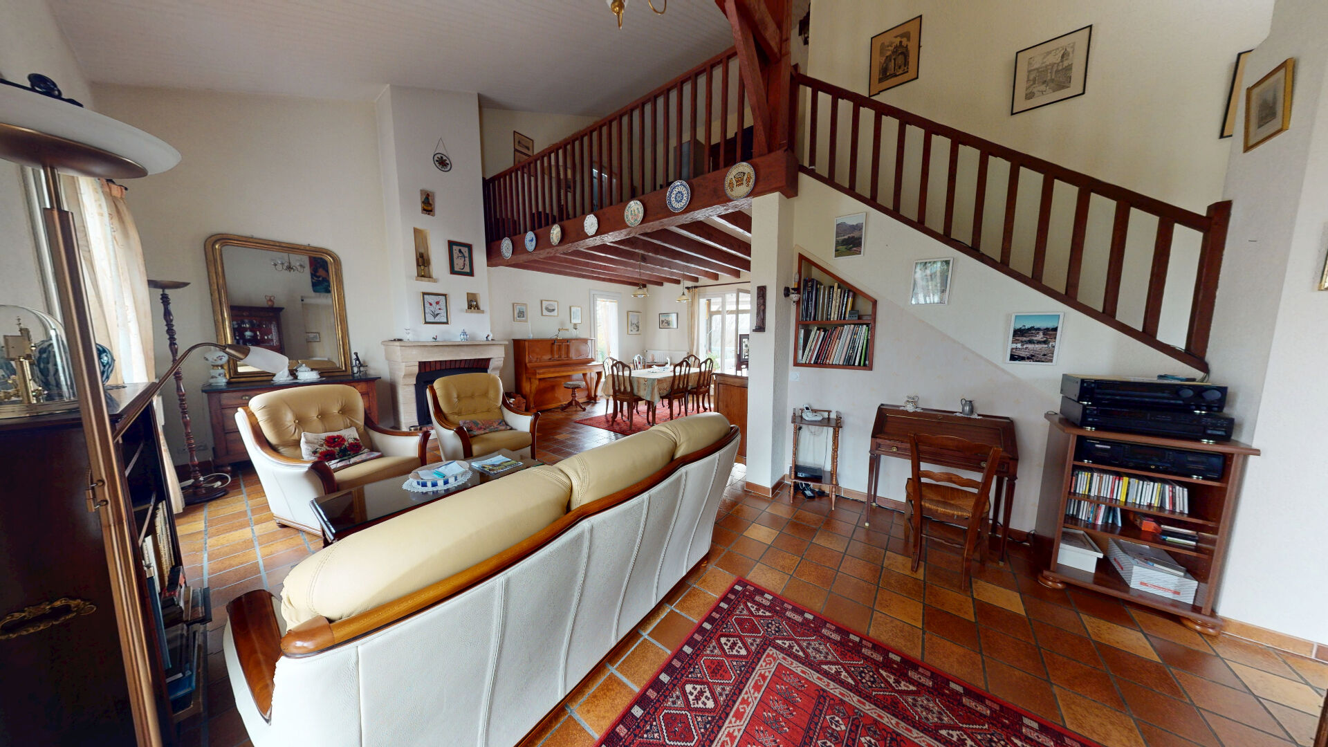 À l'étage, une mezzanine offre un bel espace ouvert qui peut accueillir un bureau et vous trouverez également une chambre avec une salle d'eau et un wc .