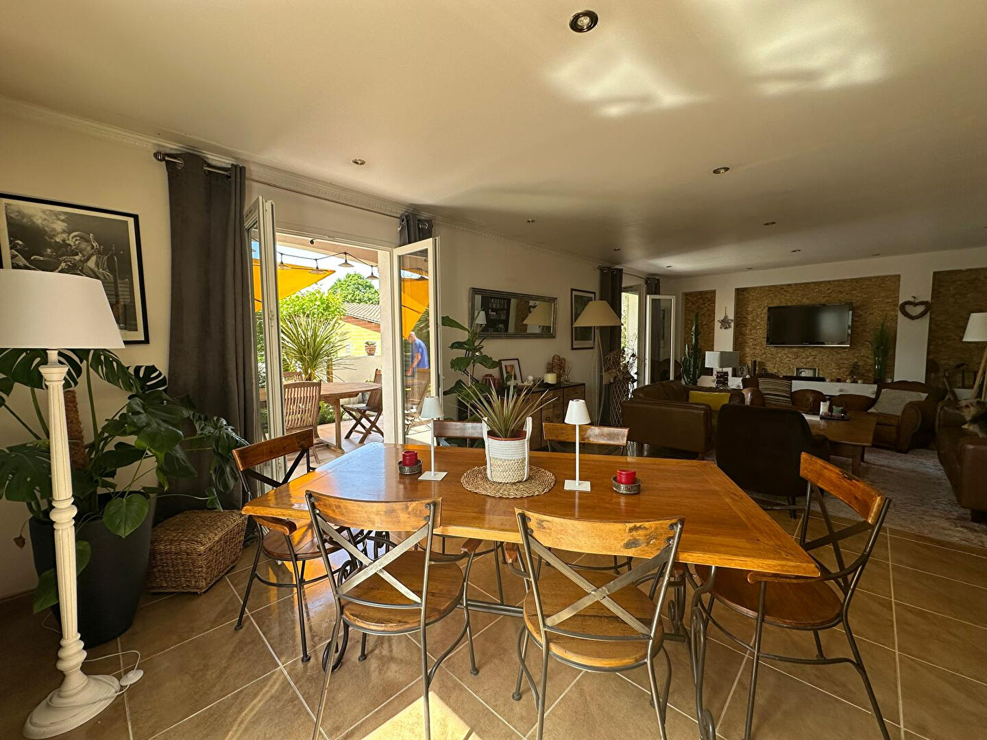 Dès l'entrée, vous découvrirez une superbe cuisine entièrement équipée, semi-ouverte, conçue comme un véritable espace à vivre, donnant sur un séjour lumineux de près de 40 m². Celui-ci s'ouvre sur une magnifique terrasse couverte sans vis-à-vis, idéale pour profiter pleinement des extérieurs.