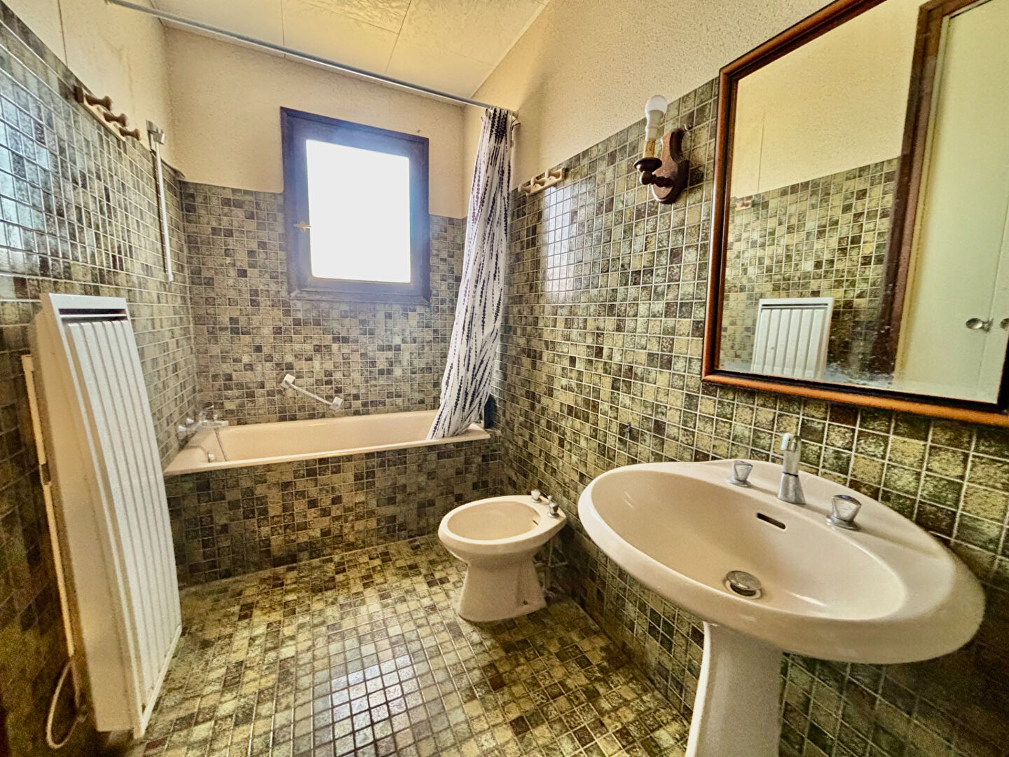 CABESTANY Réf: M1114 . A VENDRE Villa 4 faces à deux pas du centre ville, avec beaucoup de potentiel de 196 m² environ sur terrain 4 faces distribuant 2 logements. Entrée principale commune avec un hall desservant un appartement en rez de chaussée de type T3 de 73 m² environ avec cuisine indépendante, salon avec accès sur terrasse et deux chambres.
