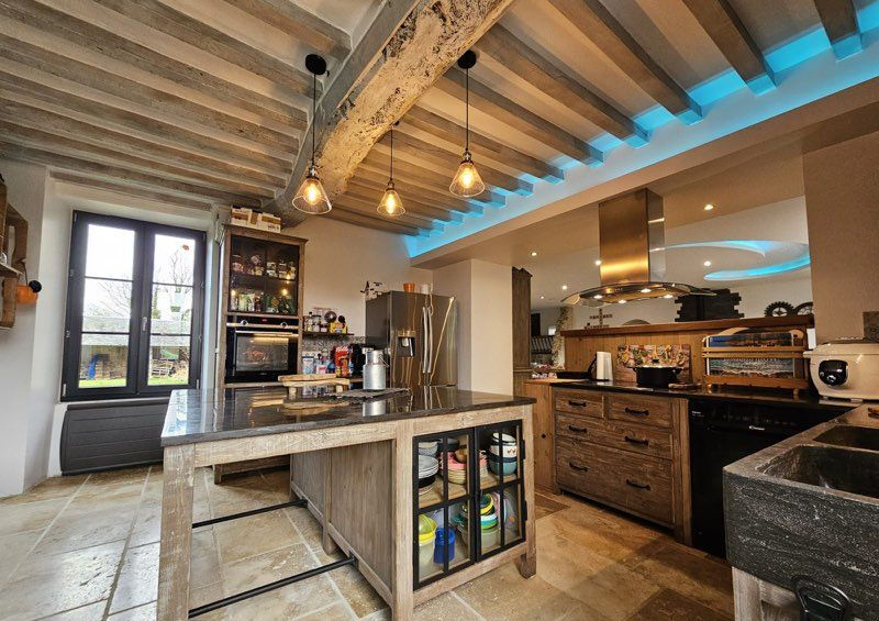 Venez découvrir cette magnifique maison située dans un ancien corps de ferme, entièrement rénovée avec des matériaux de qualité. Vous serez immédiatement séduit par ses poutres d'époque et ses murs en pierre apparente qui lui confèrent un cachet unique.