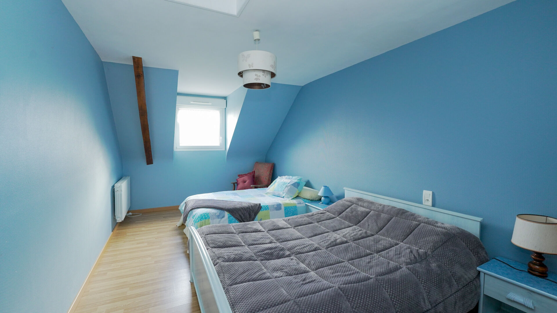 À l'étage, vous trouverez quatre chambres dont deux avec placards, une salle de bains, des toilettes séparées ainsi qu'un couloir avec rangements.