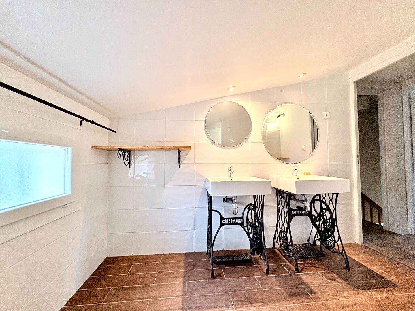 À l'étage, trois chambres accompagnées d'une salle d'eau offrent un espace intime et reposant, tandis qu'au rez-de-chaussée, la cuisine et le séjour baigné de lumière s'ouvrent sur un jardin arboré, véritable havre de verdure où se dévoile une piscine , propice aux journées douces et aux instants partagés.