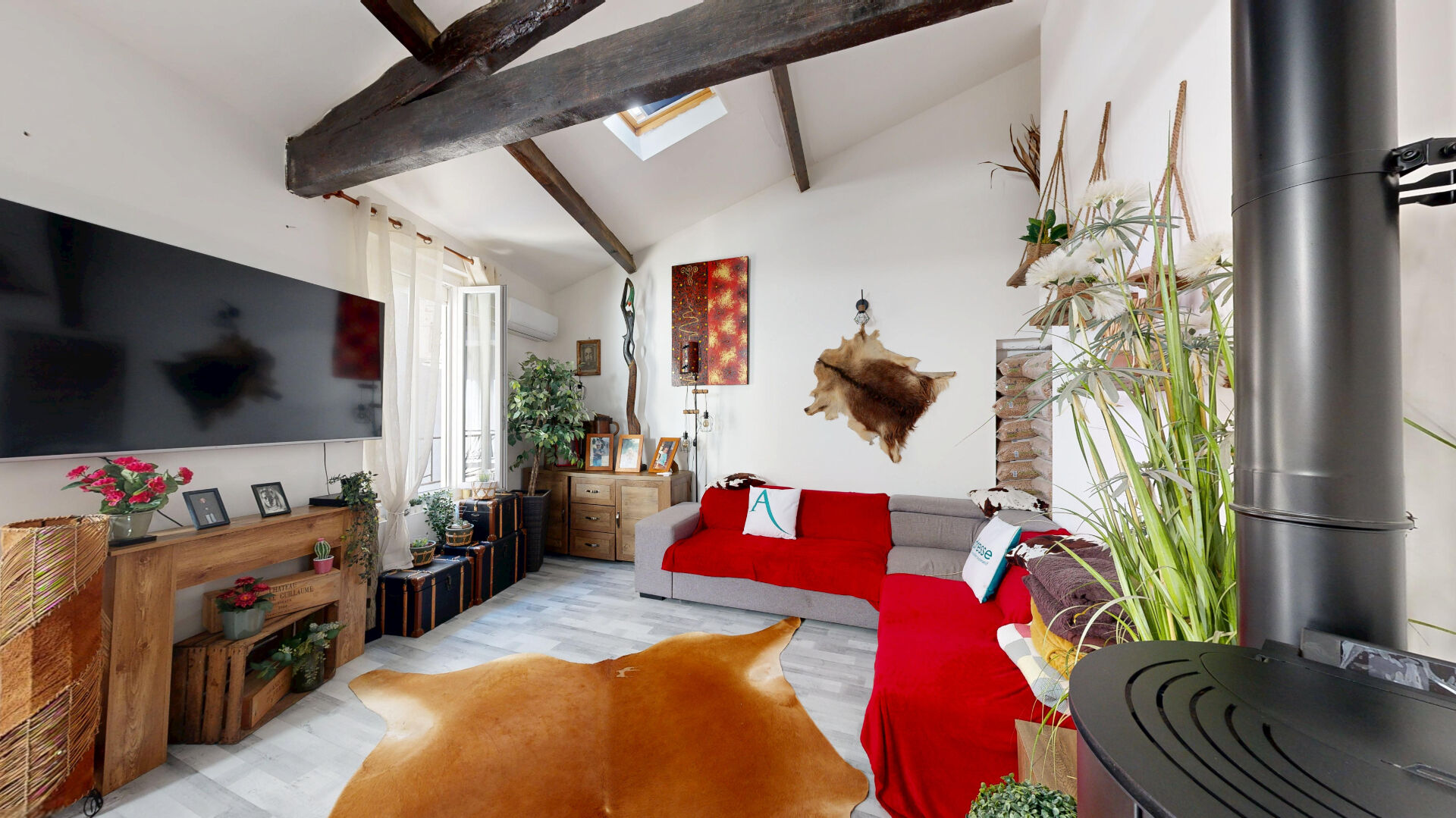 La maison est équipée pour votre confort avec un poêle à granulés, la climatisation réversible et le double vitrage.
