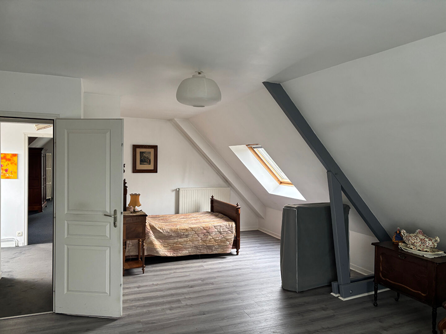 À l'étage : Deux chambres aux volumes impressionnants (de 40 à 60 m² au sol) offrant un potentiel exceptionnel pour créer jusqu'à quatre grandes chambres et un bureau en ajoutant seulement deux cloisons ! Une salle d'eau complète cet étage.