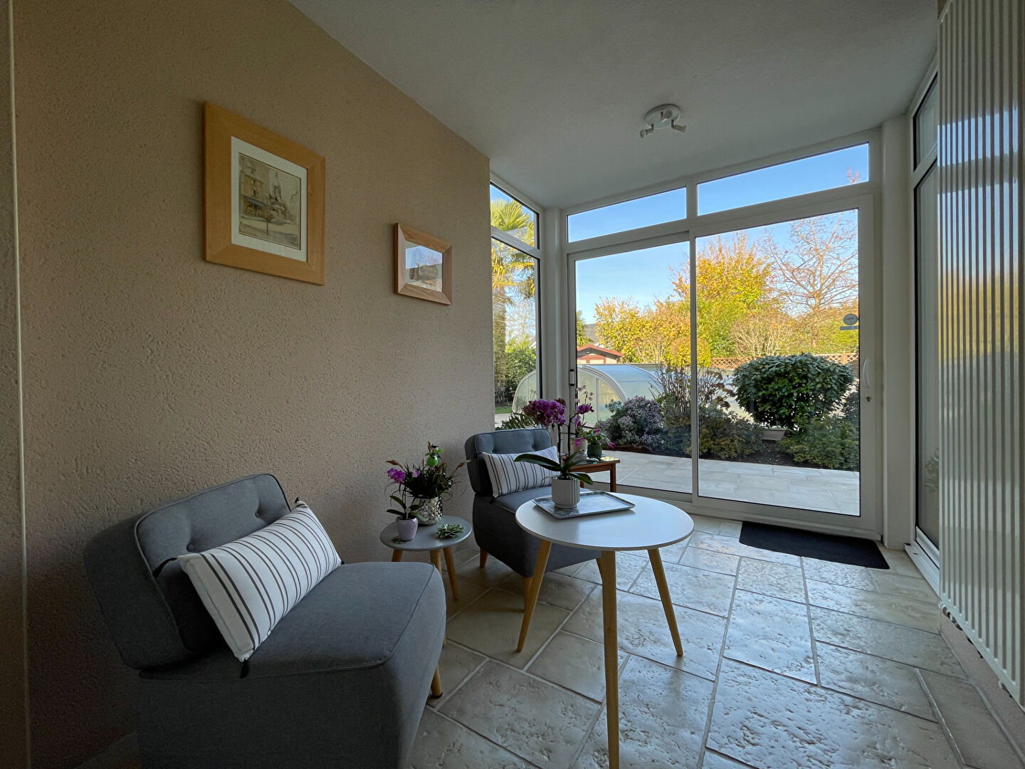 Dès l'entrée, vous serez séduits par le vaste hall qui mène à un séjour double, lumineux grâce à sa double orientation, agrémenté d'un poêle à bois pour une ambiance chaleureuse. La cuisine, aménagée et équipée, s'ouvre sur un charmant patio faisant office de jardin d'hiver.