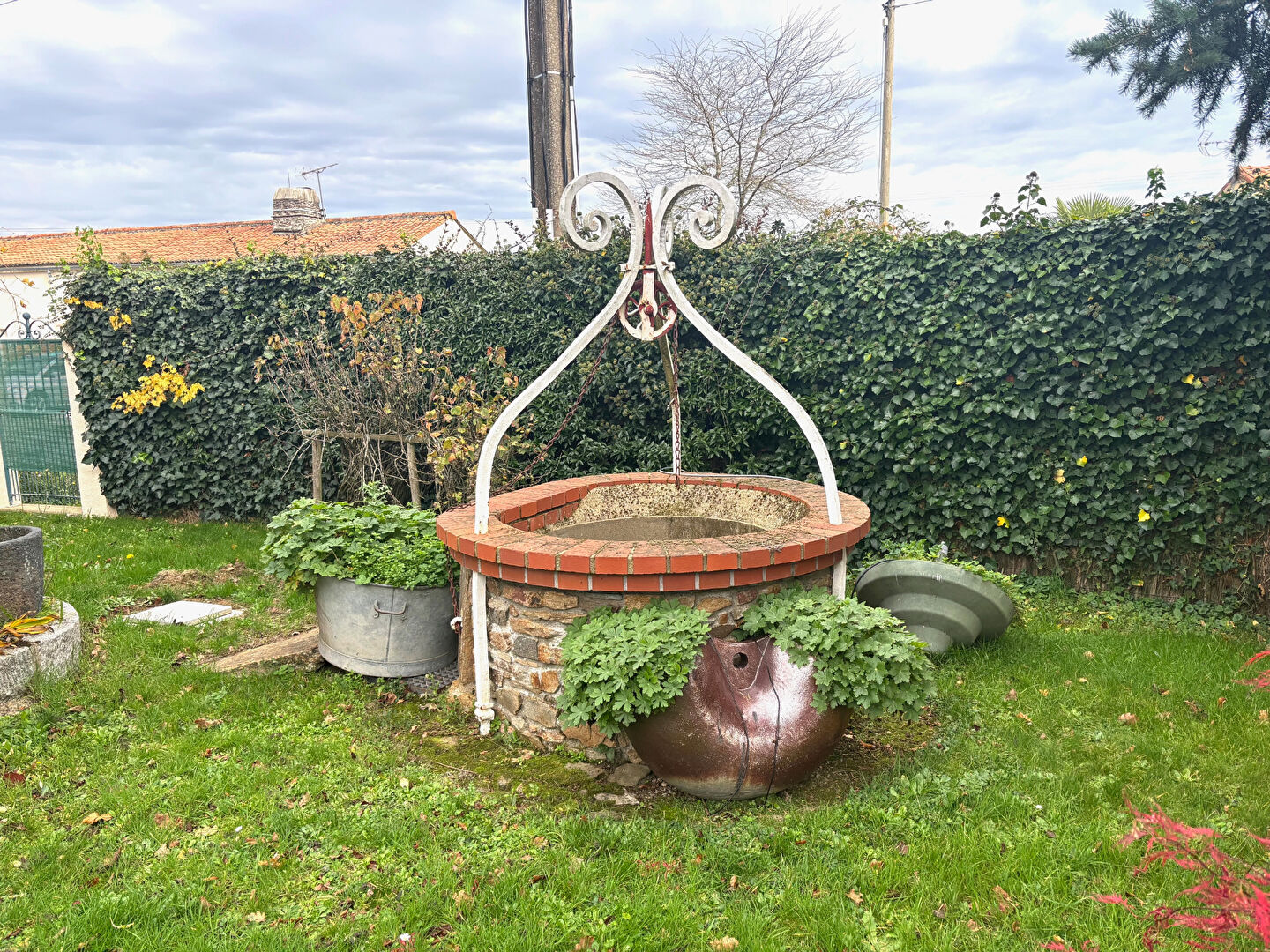 À l'extérieur, profitez d'un jardin arboré, d'un garage double, d'un abri de jardin et d'un puits parfaits pour les amoureux de la nature et du calme.