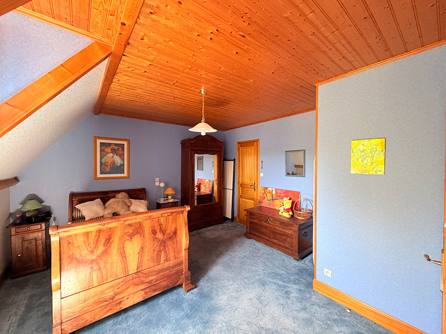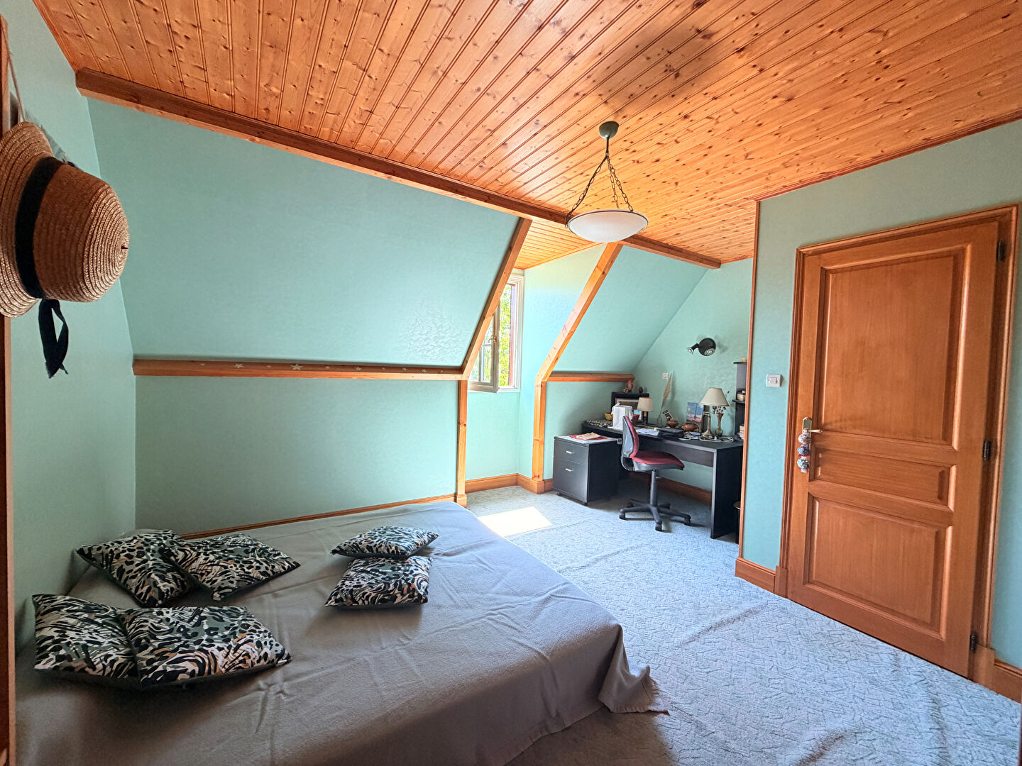 Découvrez cette charmante maison des années 80, nichée sur un magnifique terrain de 7000 m². Offrant une surface totale de 250 m², elle se compose au niveau jardin d'un garage/cave spacieux d'environ 110 m² et d'une partie habitable de près de 143 m². Elle se compose d'une grande entrée , une cuisine indépendante de 15 m², un vaste salon/salle à manger de 33 m², deux chambres confortables (placards), une salle de bain ainsi qu'un WC séparé. À l'étage supérieur, profitez de deux chambres mansardées de 15 m² avec grands placards, une salle d'eau et un WC indépendant. Cette maison fonctionnelle et agréable attend simplement une mise au goût du jour pour révéler tout son potentiel. Elle bénéficie de menuiseries bois double vitrage, d'un chauffage électrique complété par une cheminée, d'un ballon d'eau chaude électrique, d'un terrain partiellement clôturé et d'une fosse septique. Une opportunité rare à ne pas manquer !
