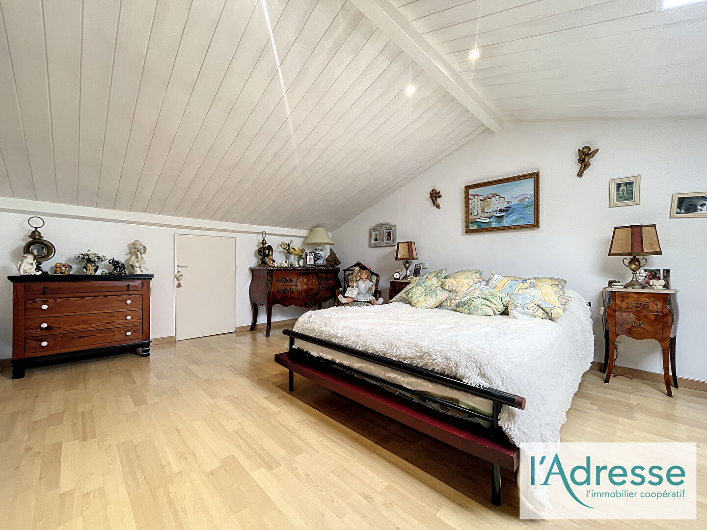 L'étage, lui, offre deux belles chambres de plus de 20m² (chacune avec son placard sous rampants d'environ 6m² chacun), une salle d'eau avec WC, ainsi qu'un espace bureau en mezzanine, surplombant la véranda.
