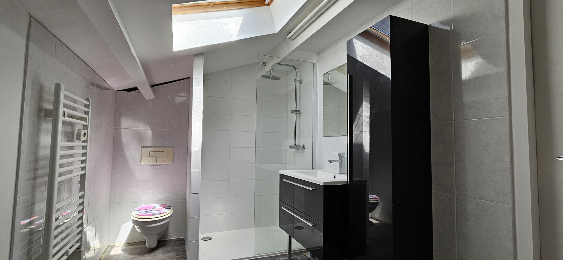 A l'étage 3 grandes chambres, une salle d'eau avec WC et une mezzanine de 38m2.