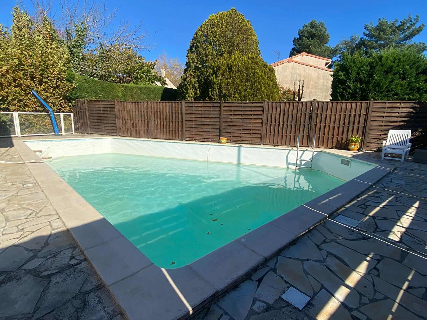 Située dans un quartier résidentiel, villa T5 de 144m² très lumineuse, comprenant un vaste séjour de 47m² avec cheminée, une cuisine de 13m² avec cellier, 3 chambres, une salle de bains avec WC et une salle d'eau avec WC. A l'étage, une mezzanine à usage de bureau et une 4e chambre avec pièce attenante. Un accès aux combles de 20m² vous offrira un bel espace de stockage ou autres. Climatisation au rdc et panneaux solaires.