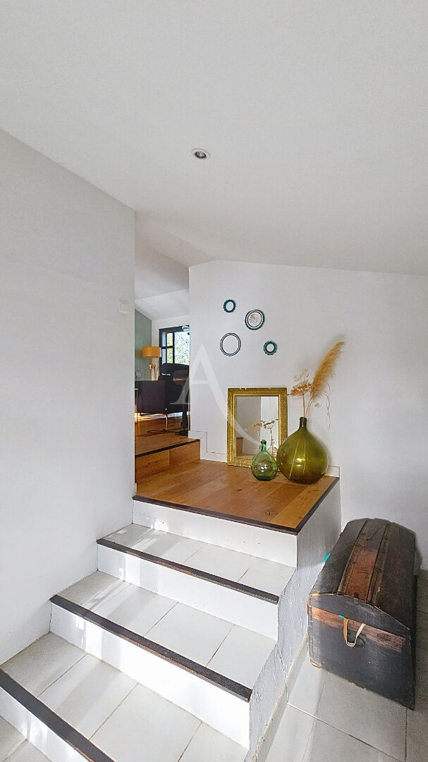 4 chambres dont une avec sa salle d'eau, une salle de bain. Chauffage pompe à chaleur et cheminée, panneaux solaires. Buanderie, atelier, terrasse couverte et superbe terrain arboré de 2340m2.