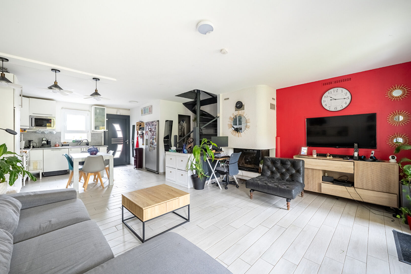 Elle se compose au rez-de-chaussée d'une entrée avec rangements, d'une cuisine fonctionnelle, d'un spacieux salon-salle à manger lumineux ainsi qu'un Wc avec buanderie.