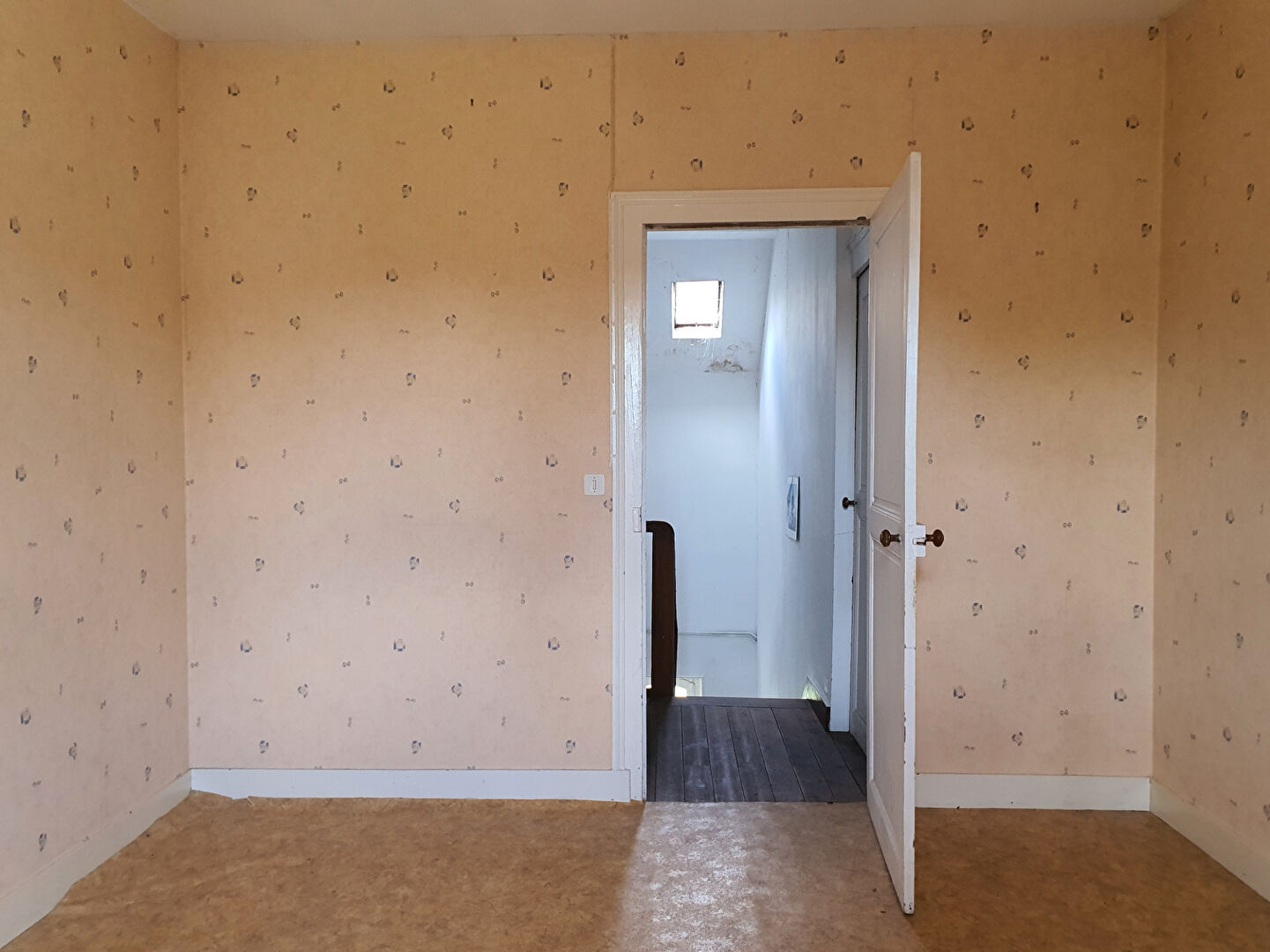 À l'étage : palier, chambre.