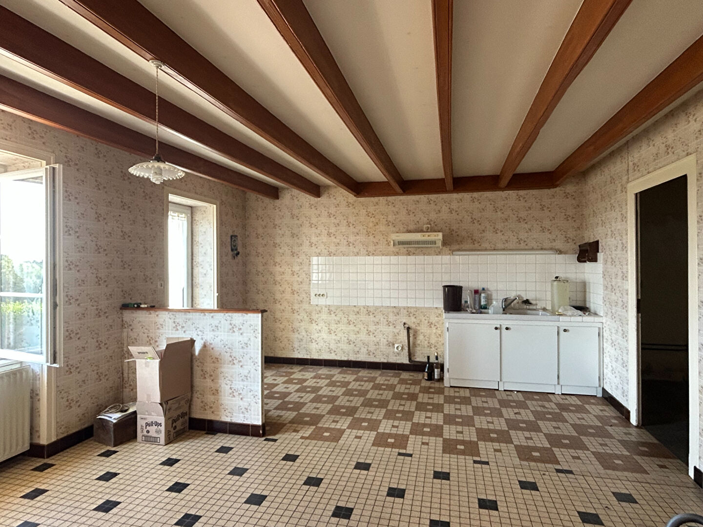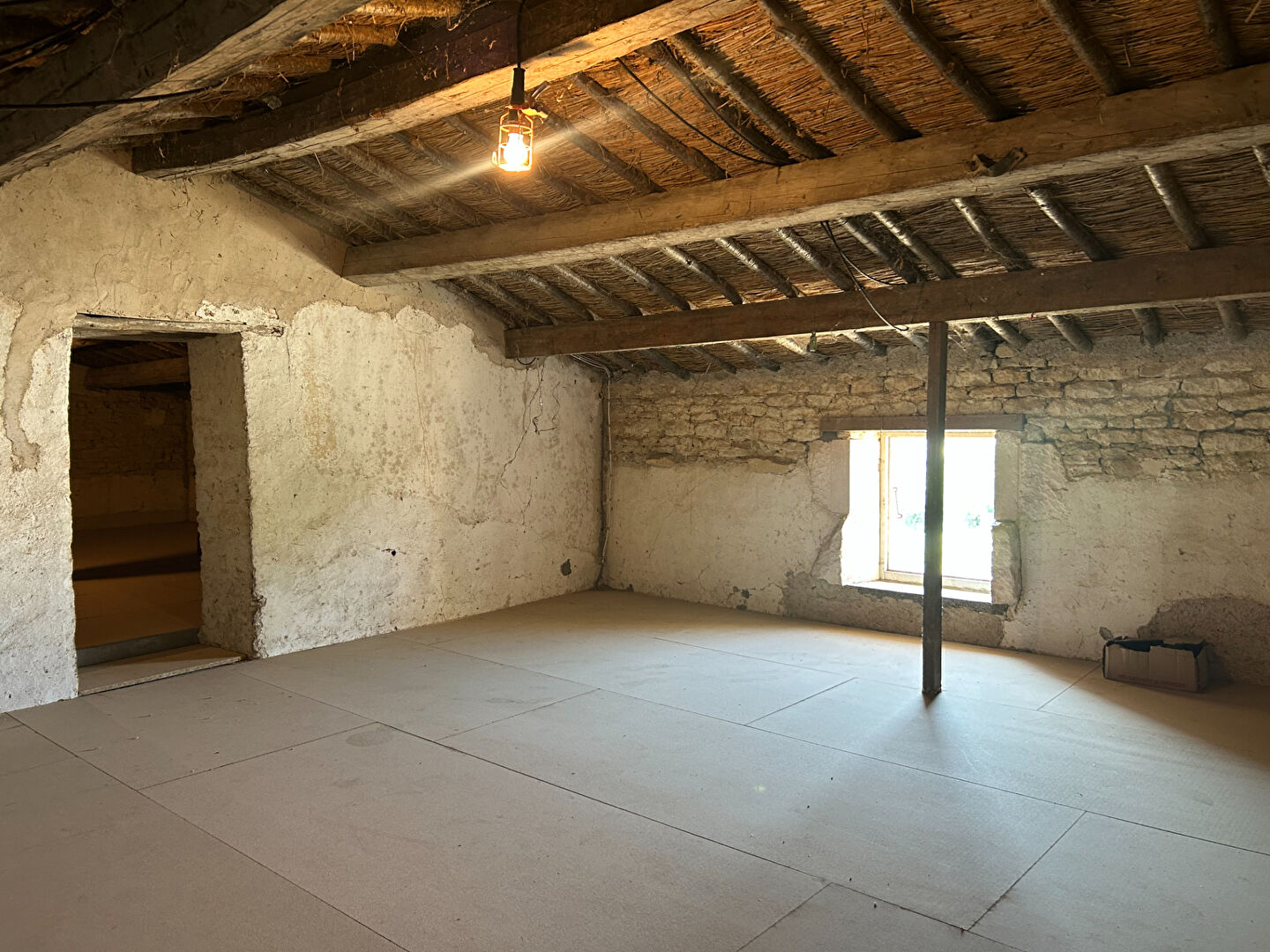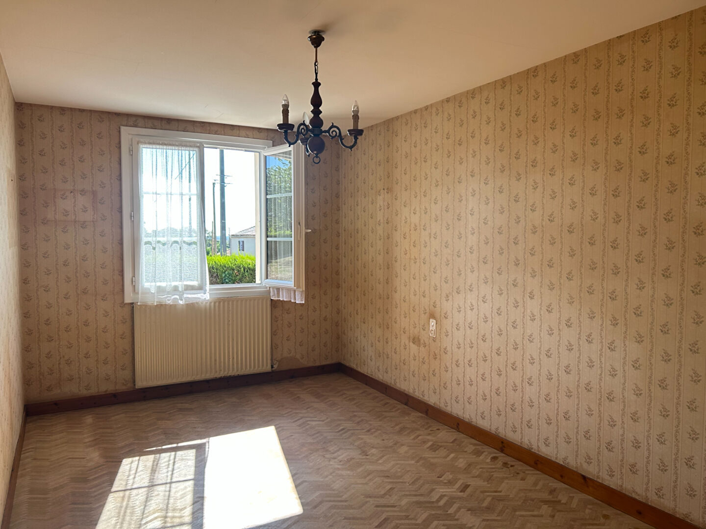 Côté technique : une partie des ouvertures a été remplacée par du PVC double vitrage, les combles ont été isolés au-dessus des chambres, et la maison est équipée d'un système de chauffage central.