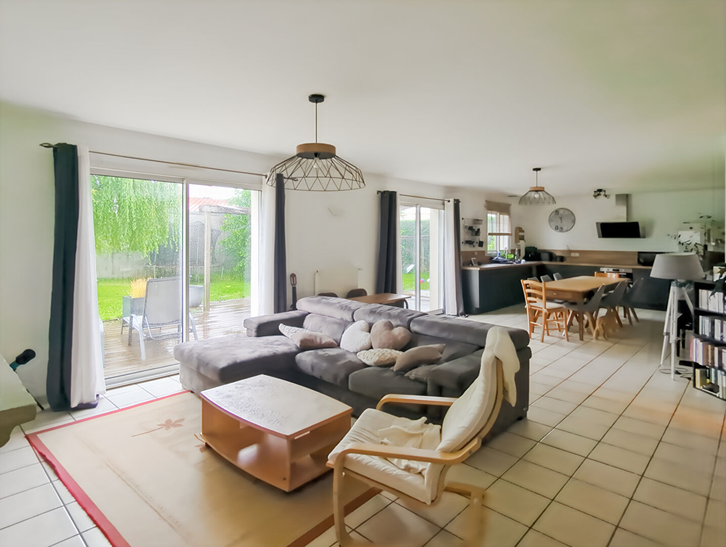 A VENDRE - CHALLANS - Dans un cadre verdoyant, maison d'une surperficie habitable de 118m² offrant une belle pièce de vie de 51m² avec cuisine équipée aménagée de qualitée, dégagement desservant trois chambres, un bureau, une salle de bains. Cellier. Atelier.
